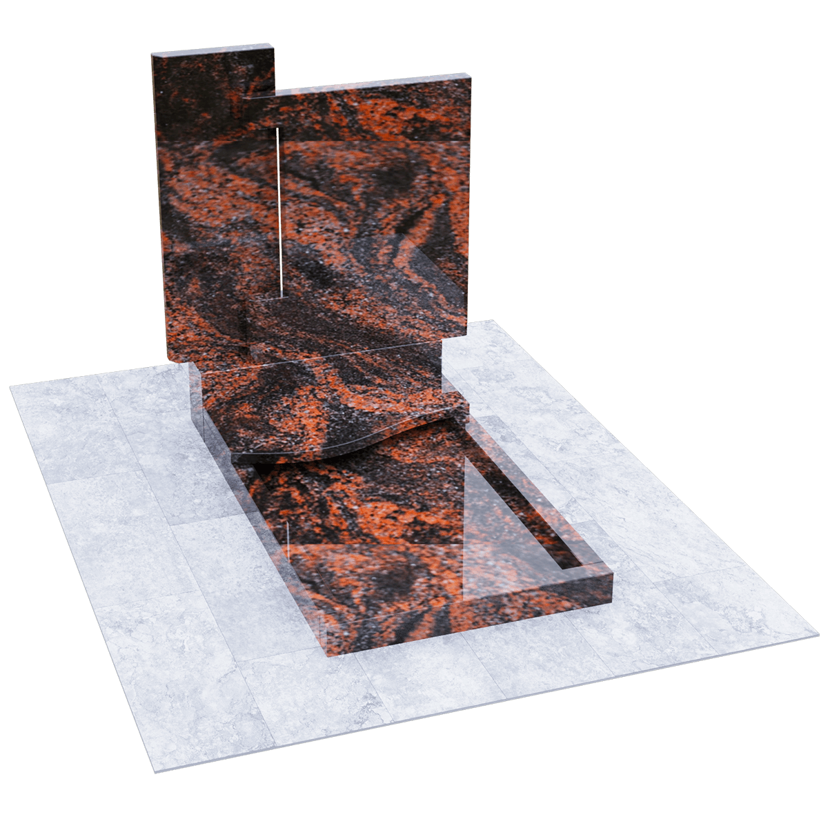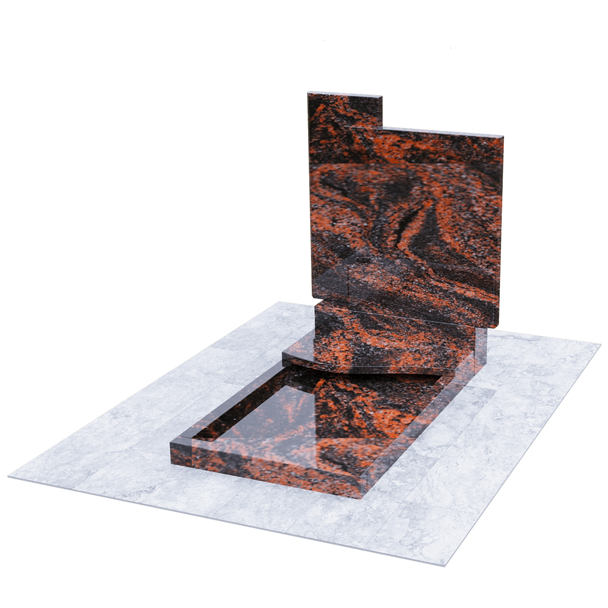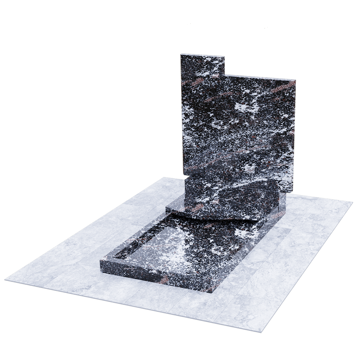 Ритуальное изделие, созданное по уникальному проекту руками мастеров из мелкозернистых элитных сортов натурального гранита. Предполагает размещение на могильном холме семейного захоронения, так как габариты мемориала имеют увеличенный размер. По традиции на двойное захоронение устанавливается стела, имеющая две автономные части, отличающиеся формой, или размерами. Данное изделие не исключение. Составляя одно целое, все же каждая часть имеет свои персональные свойства. В ритуальный комплекс также входит открытый квадратный цветник и имеющий небольшое перекрытие, выполняющее роль подставки для аксессуаров. Так же согласовывается и полное оформление надгробия, включающее персональную информацию и индивидуально разработанный художественный декор, который будет выполнен методом передовых технологий гравировки. Натуральный гранит является одной из самых прочных пород. Созданный природой в особых условиях, он абсолютно не поддается разрушительному воздействию атмосферных факторов и сохраняет свои свойства веками.