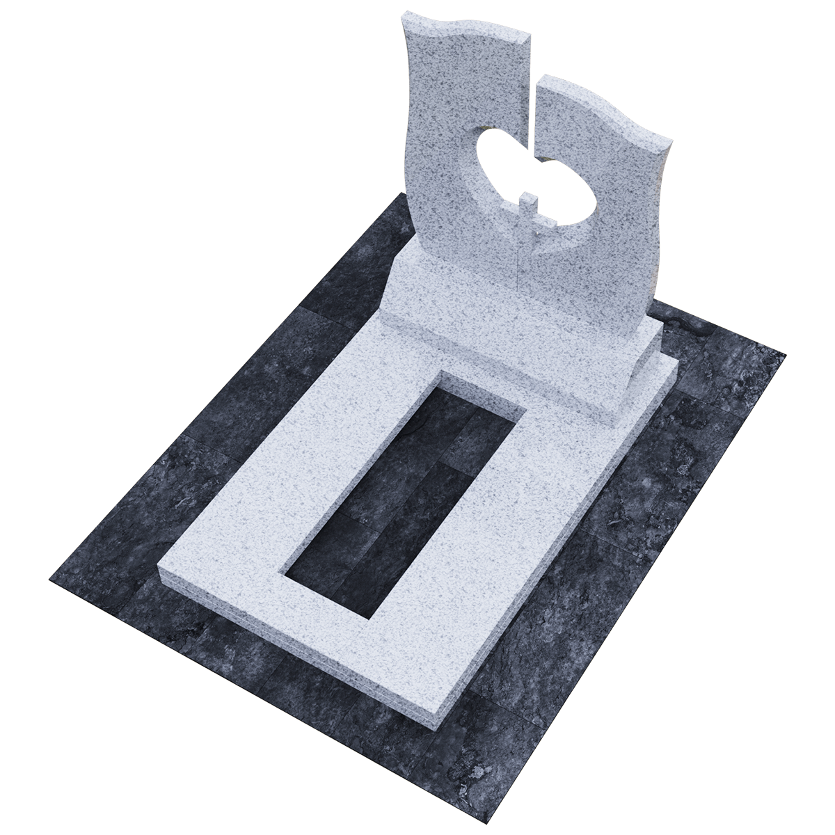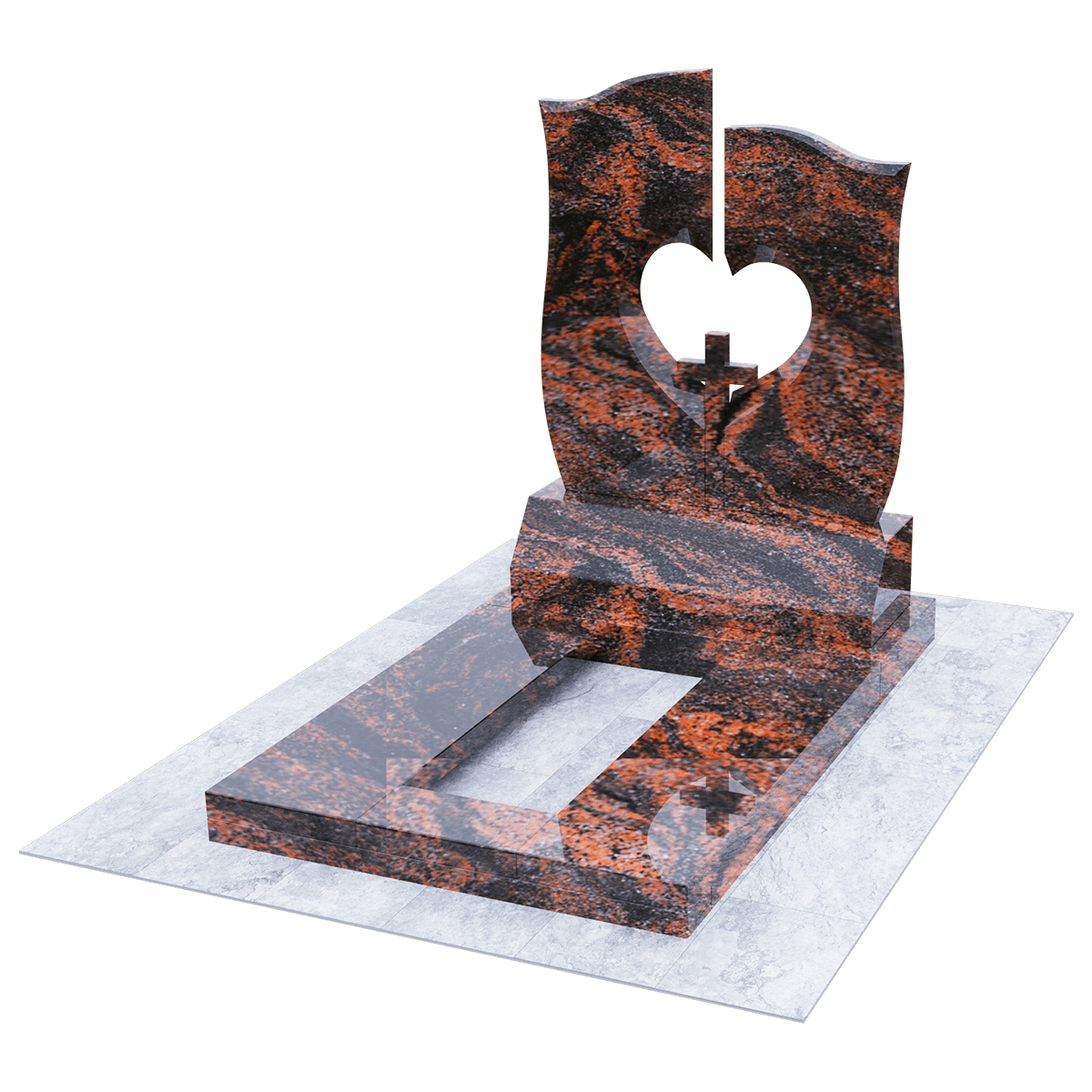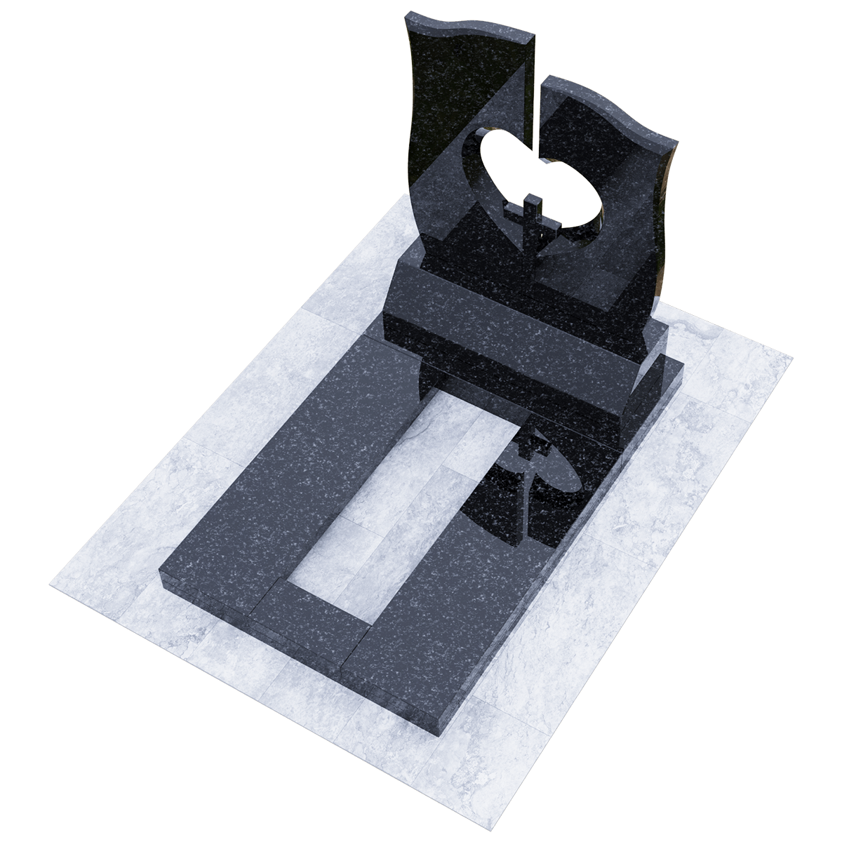 Комплекс ритуального назначения выполнен из натурального полированного гранита в моноцветном стиле. Широкое надгробие, рассчитанное на две могилы, предназначено для семейного захоронения. Две могильные плиты расположены на каркасе из черного камня с цветником посередине. Массивная трапециевидная плита служит основанием для стелы трогательного дизайна, где две вертикальные гранитные пластины замысловатых форм сливаются в одно целое, вырисовывая изображение сердца с миниатюрным крестом. Без слов понятно, что здесь нашли вечный покой те, кого в жизни объединила любовь, и смерть не смогла разлучить. Элитные сорта гранитного камня с природными вкраплениями и прожилками разноцветных минералов, под воздействием очень высоких температур и давления, образуют эксклюзивный материал, из которого создаются изысканные мемориалы, украшением которых является сам камень. Все сорта камня являются экологически безопасными для окружающей среды и обладают прочностью, гарантирующей надгробию неограниченный срок служения, без утраты своих первоначальных качеств. Уход за таким изделием минимальный – удаление легких загрязнений, пыльного налета. Поверхность гранита легко поддается любой обработке, в том числе гравировке, с помощью которой будет осуществлено информационно-художественное оформление комплекса.