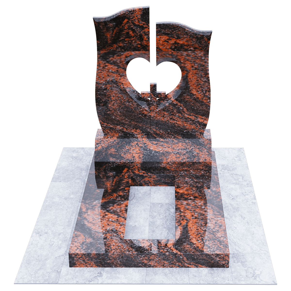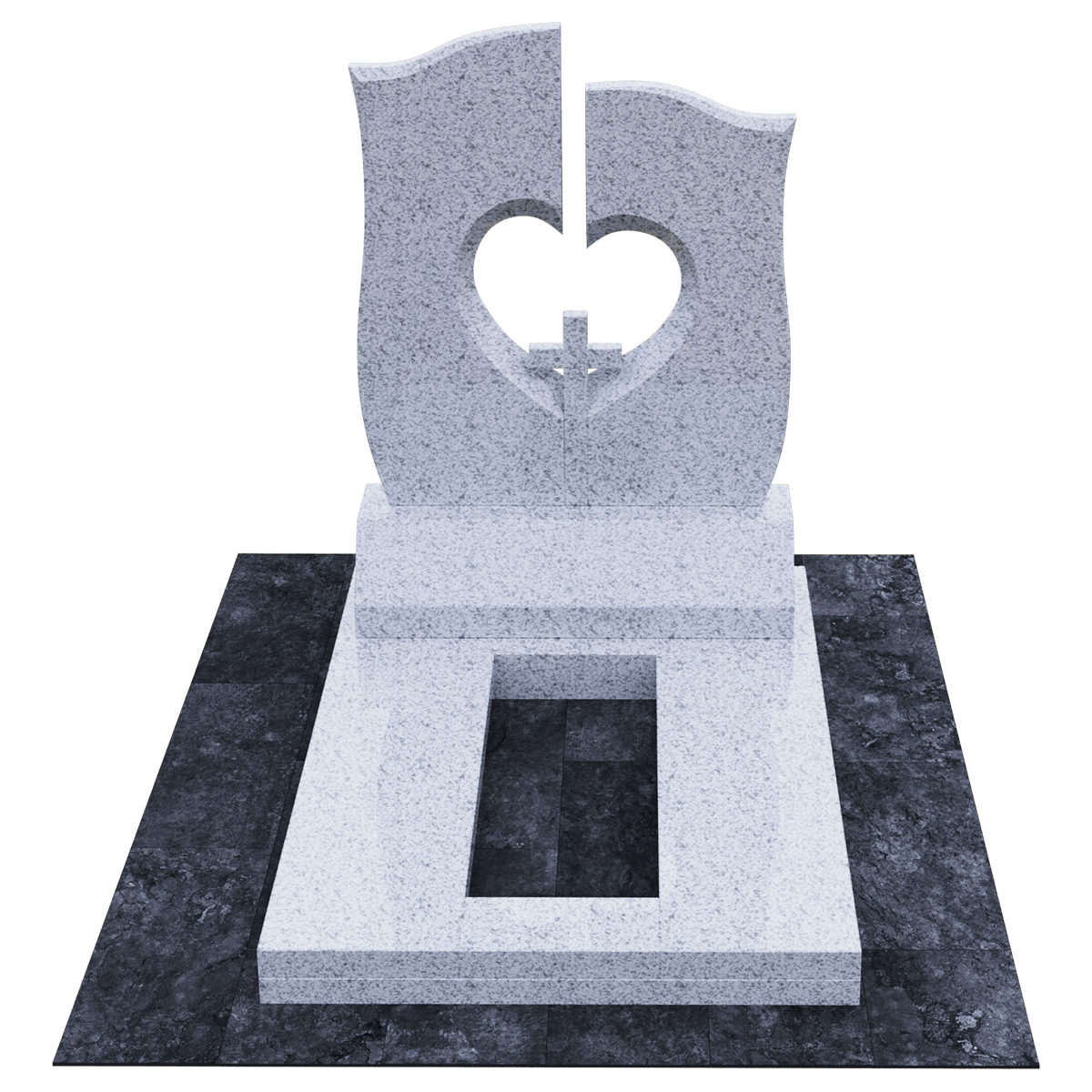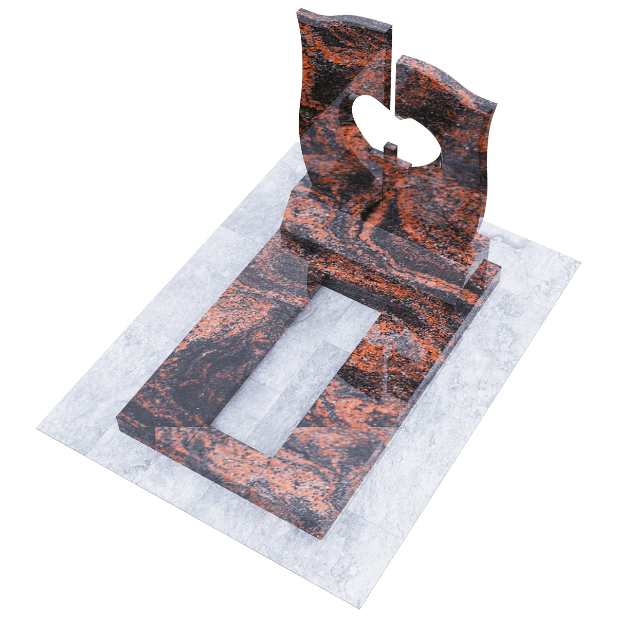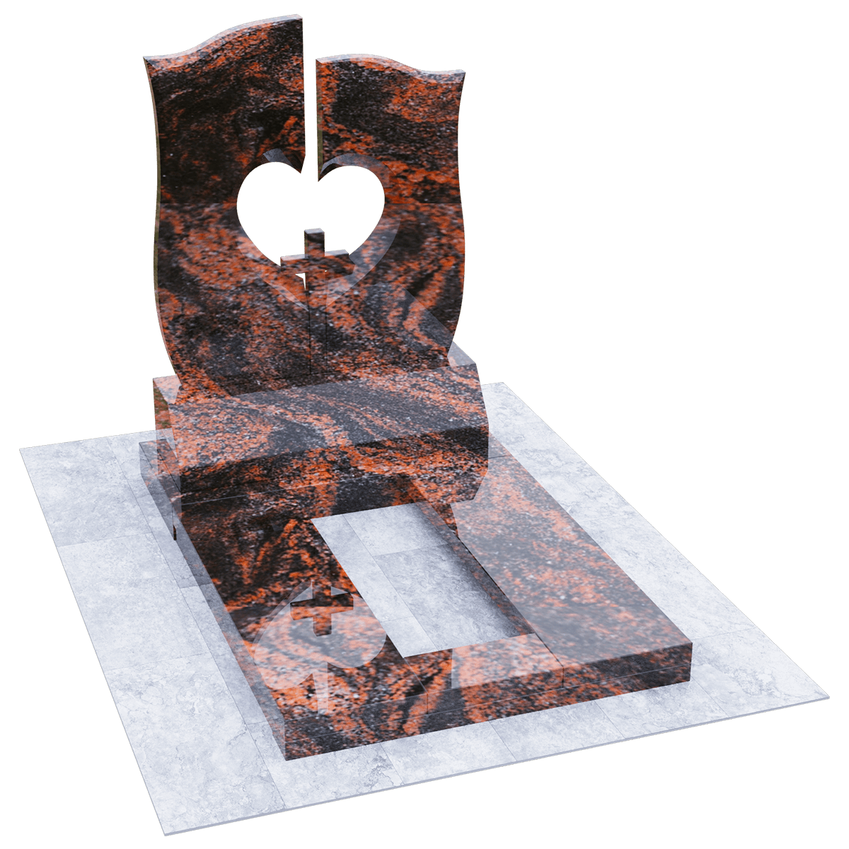 Комплекс ритуального назначения выполнен из натурального полированного гранита в моноцветном стиле. Широкое надгробие, рассчитанное на две могилы, предназначено для семейного захоронения. Две могильные плиты расположены на каркасе из черного камня с цветником посередине. Массивная трапециевидная плита служит основанием для стелы трогательного дизайна, где две вертикальные гранитные пластины замысловатых форм сливаются в одно целое, вырисовывая изображение сердца с миниатюрным крестом. Без слов понятно, что здесь нашли вечный покой те, кого в жизни объединила любовь, и смерть не смогла разлучить. Элитные сорта гранитного камня с природными вкраплениями и прожилками разноцветных минералов, под воздействием очень высоких температур и давления, образуют эксклюзивный материал, из которого создаются изысканные мемориалы, украшением которых является сам камень. Все сорта камня являются экологически безопасными для окружающей среды и обладают прочностью, гарантирующей надгробию неограниченный срок служения, без утраты своих первоначальных качеств. Уход за таким изделием минимальный – удаление легких загрязнений, пыльного налета. Поверхность гранита легко поддается любой обработке, в том числе гравировке, с помощью которой будет осуществлено информационно-художественное оформление комплекса.