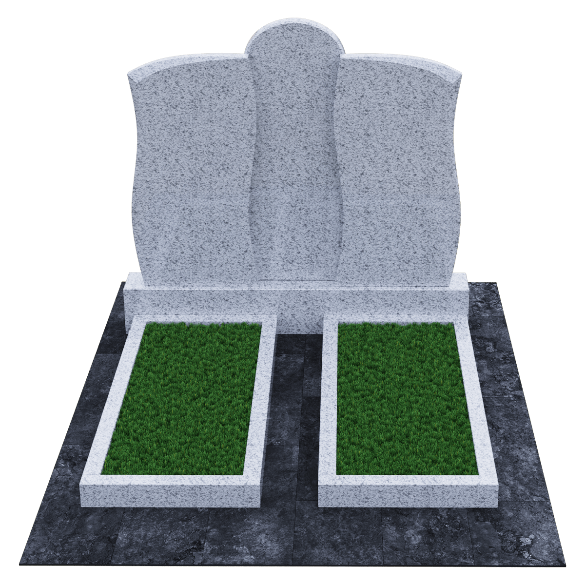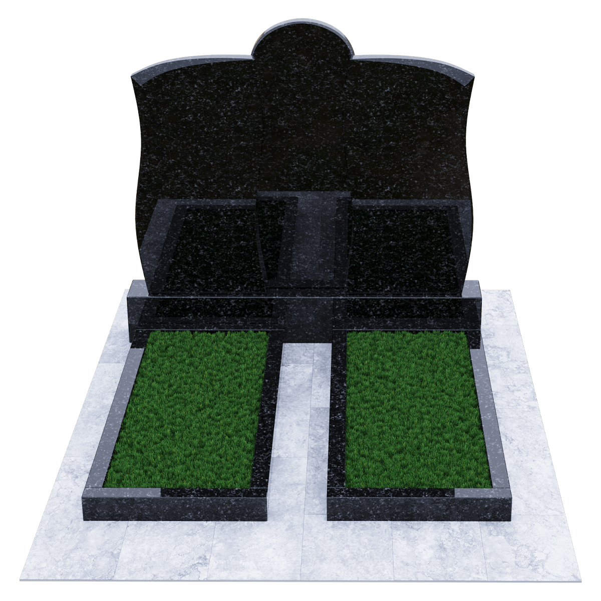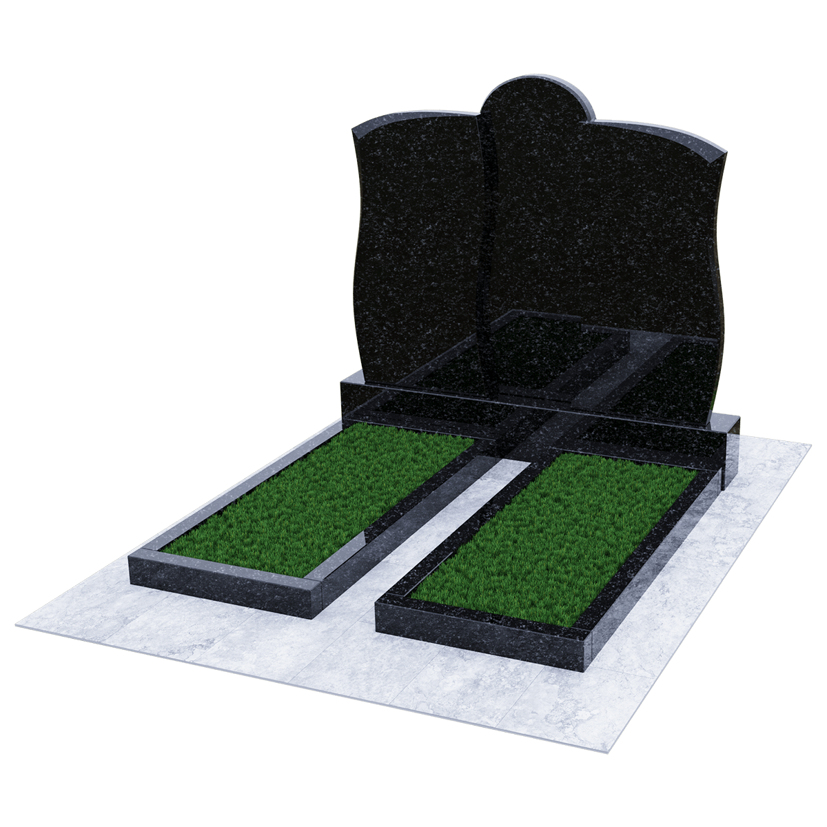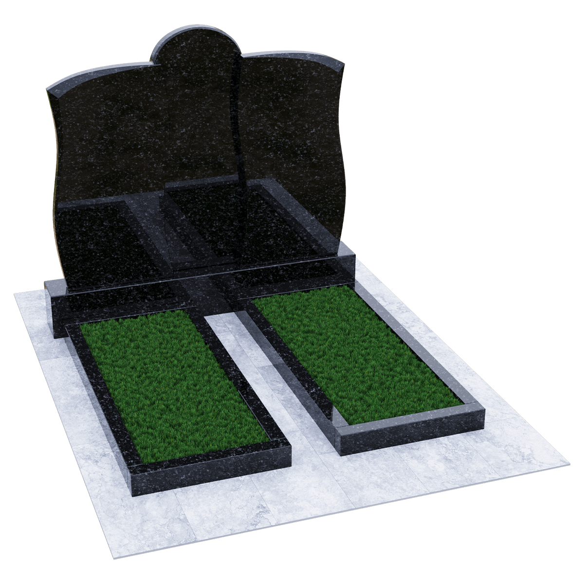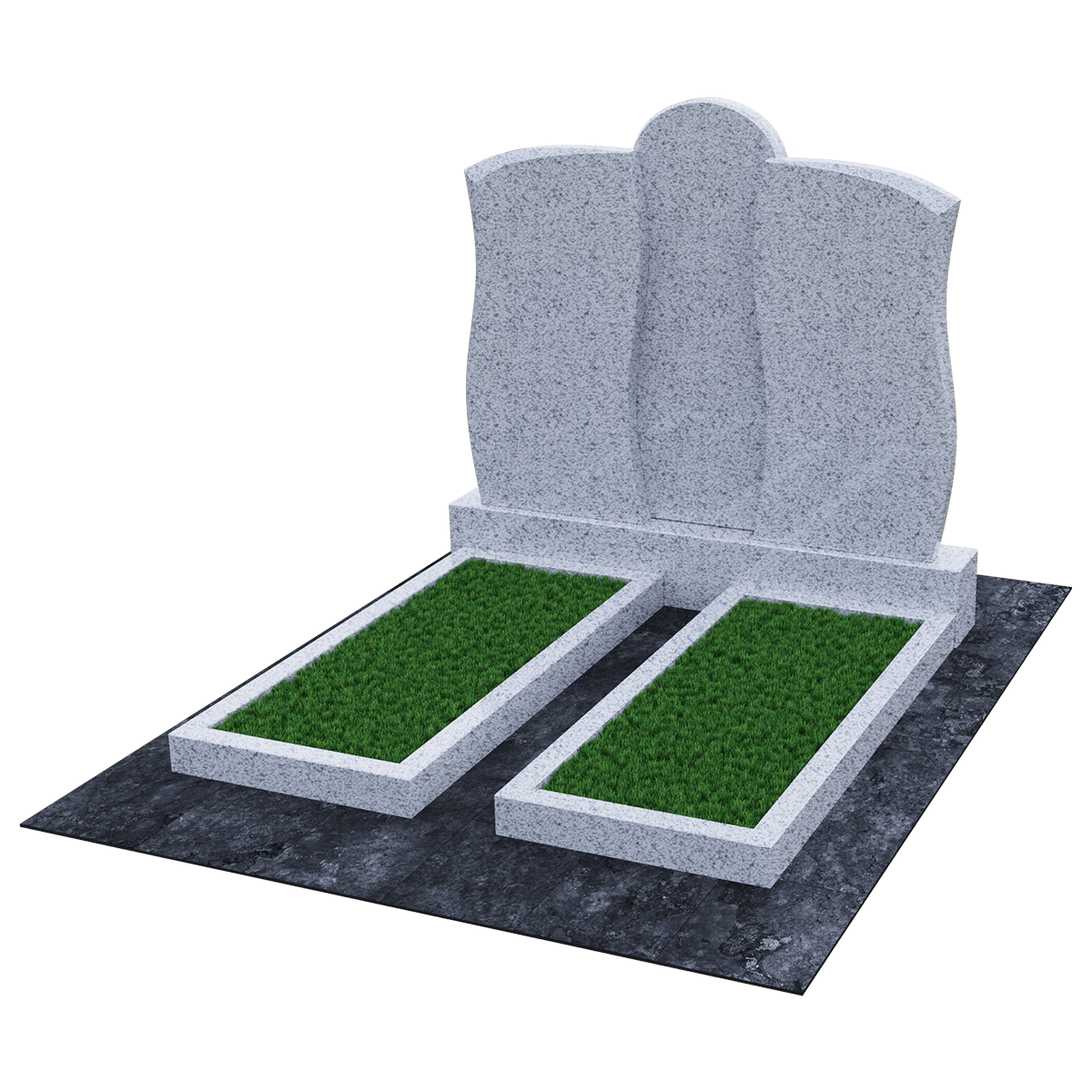 Мемориальный монументальный комплекс, предназначенный для расположения на семейном захоронении на кладбище, выполнен из натурального гранита, обработанного методом полировки. Предложенный сорт, в уникальном сочетании различных минералов, выраженных разноцветными вкраплениями и прожилками, создает изысканные ансамбли торжественно-сдержанных надгробий. Изготовление мемориалов именно из натурального гранита неслучайны, так как эта порода, в силу своего происхождения является наиболее прочной и твердой, но при этом легкой в обработке. Мемориал составляет комплекс, включающий два надгробия, массивное основание и стелу. Надгробия выполнены в форме прямоугольных открытых цветников, с косынками-накладками на торцевых сторонах, на которых можно расположить ритуальные аксессуары. Цветники крепятся к широкой балке-основанию, на которой установлена объемная стела. Два фрагмента стелы, имитируют траурные полотна, расположенные симметрично, относительно вертикальной стойки с куполообразной верхушкой. Каждое из полотен будет содержать информационную персональную информацию соответственно надгробию. Информация и элементы декора, по выбору, выполняются методом гравировки.
