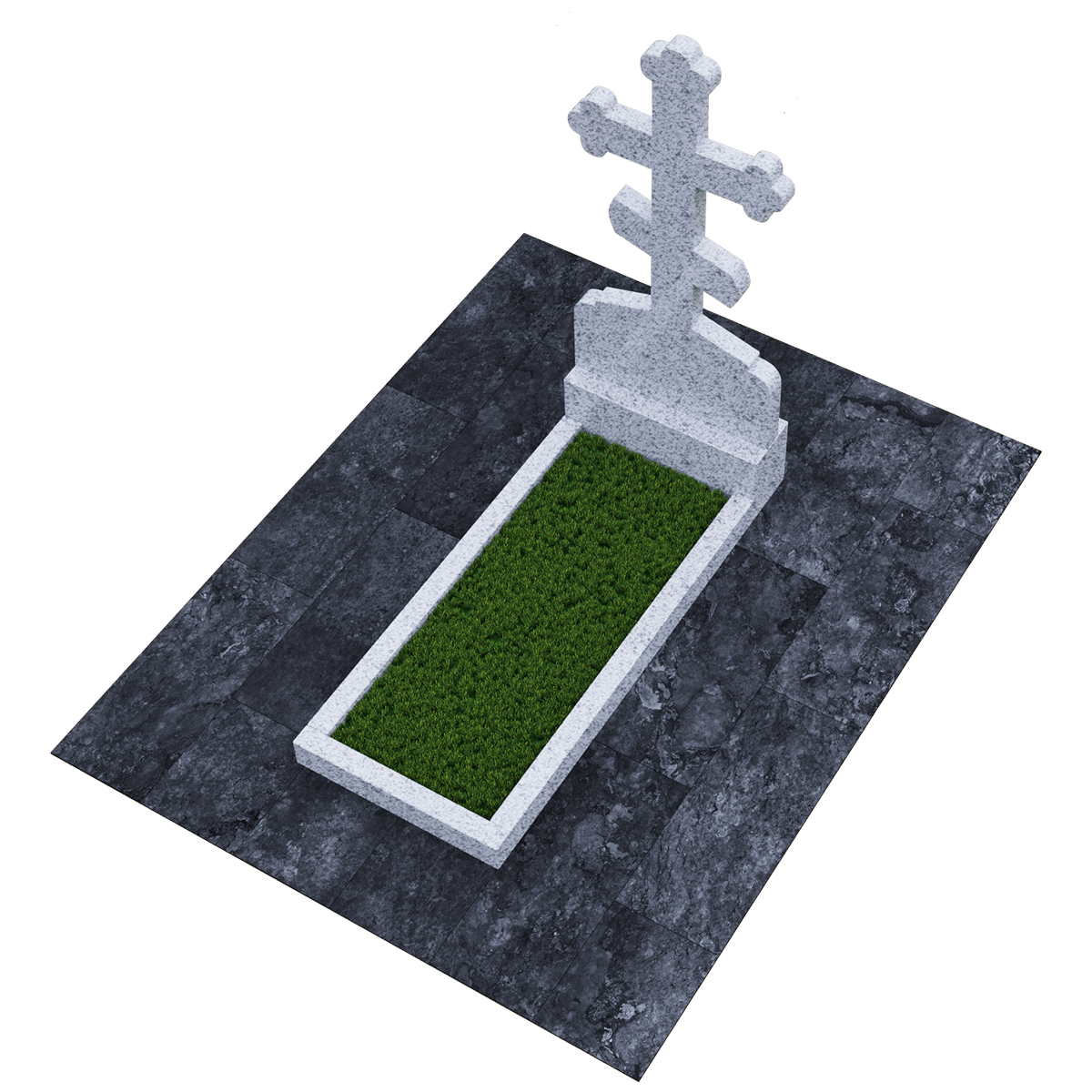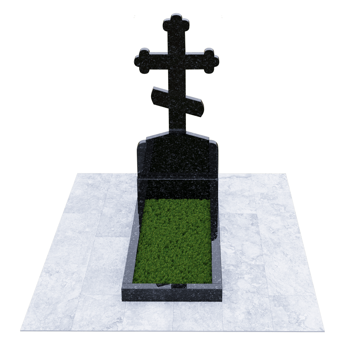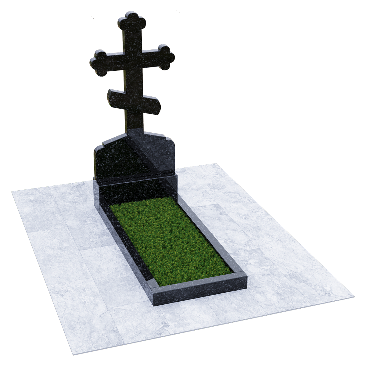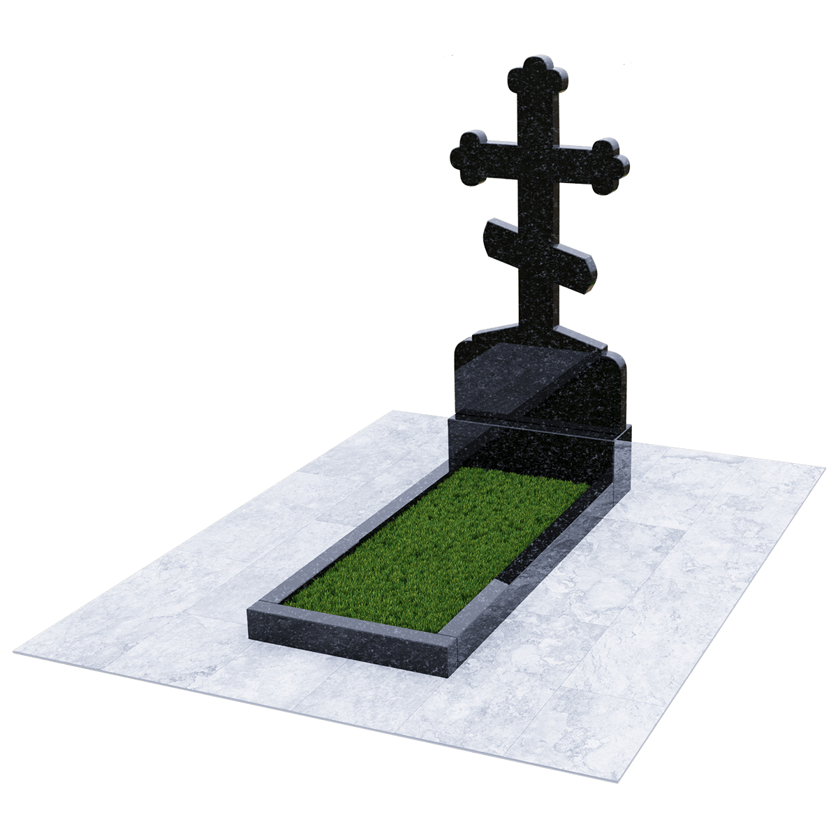 Мемориал из натурального гранита предназначен для размещения на традиционном захоронении на кладбище. Полированный камень черного цвета с присущими граниту вкраплениями не только очень красив и благороден внешне, но и является одним из самых прочных и долговечных материалов, идеально подходящих для мемориалов. Эта порода не впитывает ни влагу, ни загрязнения и устойчива к воздействию различных микроорганизмов. Уход за изделием простейший, без применения химических средств. Дизайн изделия автор выполнил в виде погоста с крестом, установленном на крепком основании и примыкающим к нему цветником, сложенном из трех гранитных балок. С помощью дополнительных накладок внутренний дизайн цветника можно сделать более изящным или закрыть его сплошной плитой. Восьмиконечный крест с трилистниками по краям присущ православной традиции, так как символизирует Святую Троицу. Также, исходя из христианских традиций, на могиле устанавливается лишь крест и не принято изображать портрет покойного. По каталогу можно подобрать достойное оформление, отвечающее различным религиозным традициям, которое будет нанесено на поверхность камня с помощью гравировки.