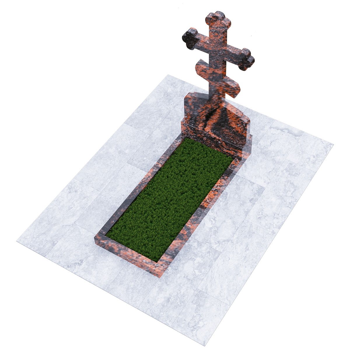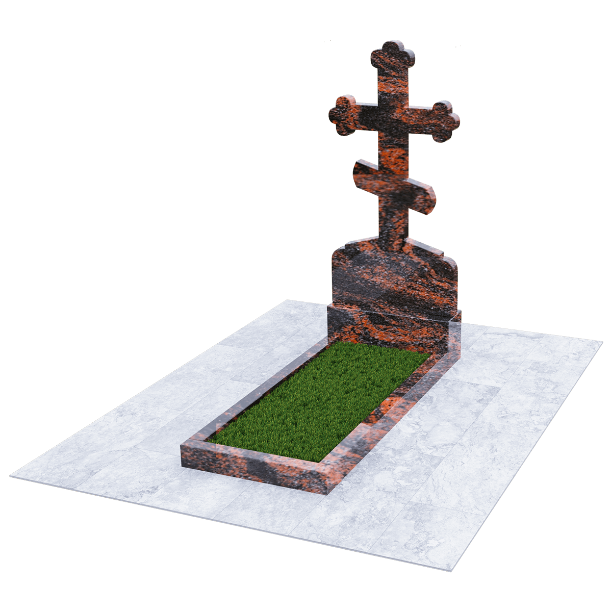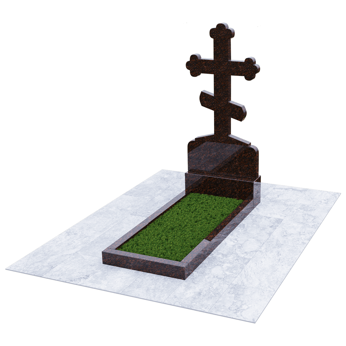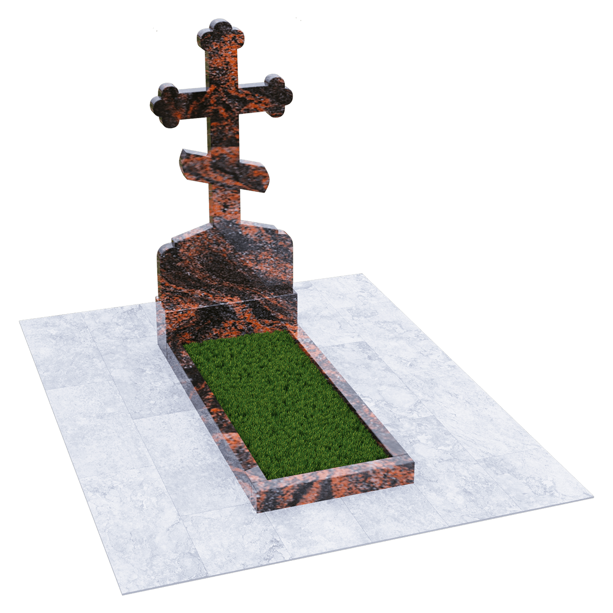 Мемориал из натурального гранита предназначен для размещения на традиционном захоронении на кладбище. Полированный камень черного цвета с присущими граниту вкраплениями не только очень красив и благороден внешне, но и является одним из самых прочных и долговечных материалов, идеально подходящих для мемориалов. Эта порода не впитывает ни влагу, ни загрязнения и устойчива к воздействию различных микроорганизмов. Уход за изделием простейший, без применения химических средств. Дизайн изделия автор выполнил в виде погоста с крестом, установленном на крепком основании и примыкающим к нему цветником, сложенном из трех гранитных балок. С помощью дополнительных накладок внутренний дизайн цветника можно сделать более изящным или закрыть его сплошной плитой. Восьмиконечный крест с трилистниками по краям присущ православной традиции, так как символизирует Святую Троицу. Также, исходя из христианских традиций, на могиле устанавливается лишь крест и не принято изображать портрет покойного. По каталогу можно подобрать достойное оформление, отвечающее различным религиозным традициям, которое будет нанесено на поверхность камня с помощью гравировки.