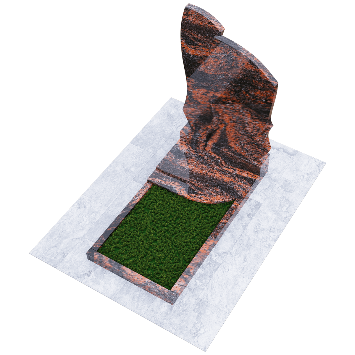 Мемориальное сооружение, предназначенное для размещения на могиле при двойном семейном захоронении, выполнено мастерами из высококачественного полированного натурального гранита по уникальному проекту. Сорта этой горной породы довольно популярны, благодаря разнообразию структуры камня и оттенков колера. Неповторимо красивый камень податлив в обработке, устойчив к воздействию переменчивых атмосферных явлений, и достаточно непритязателен в уходе. Изделие сохранит свое величие веками, не нуждаясь в специальных защитных мероприятиях. Данный комплекс, традиционно для двойных захоронений, состоит из стелы, имеющей две автономные части, объединенные одним замыслом. Стела, установленная на массивном постаменте, выполнена в виде двух траурных лент из разных сортов гранита, расположенных параллельно друг другу и имеющих схожие контуры. От постамента к надгробию ведут две изящные ступени, переходящие в открытый цветник. Верхняя ступень, одновременно является подиумом, на котором можно разместить ритуальные аксессуары. Оформление мемориального сооружения осуществляется гравировальными технологиями, гарантирующими долговечность. Персональная информация, портреты, строки эпитафий могут быть дополнены индивидуальным художественным декором.