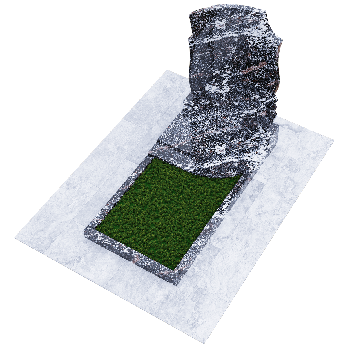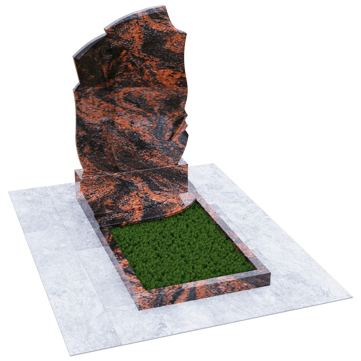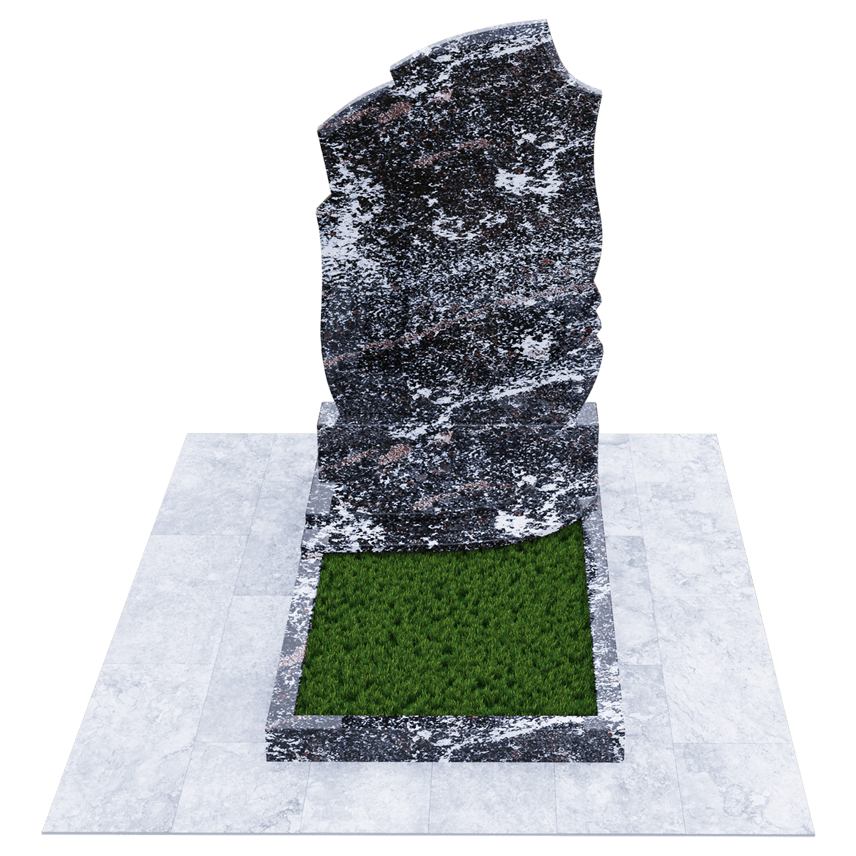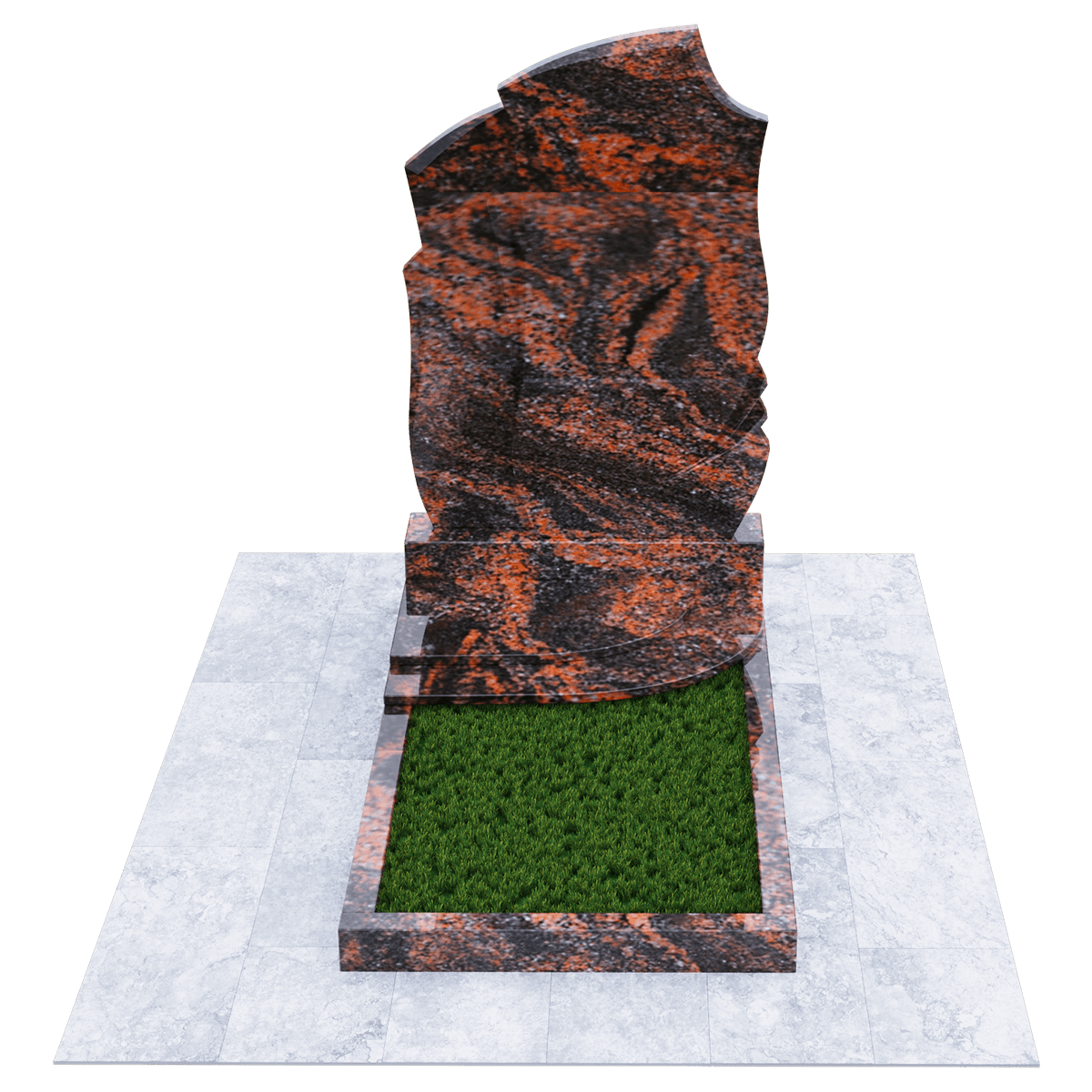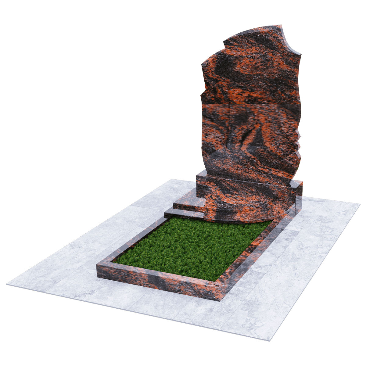 Памятник, эксклюзивного дизайна выполнен из элитных сортов натурального гранита, обработанного методом полировки. Ритуальное изделие предназначено для расположения на двойном семейном могильном захоронении на кладбище и состоит из комплекса, основанием которого является массивная плита с двойной вертикальной стелой и прямоугольным каркасом, внутри которого располагается открытый цветник. К подножию стелы прилегает двухступенчатый подиум, выполненный из двух сортов гранита и предназначенный для расположения ритуальных аксессуаров, цветочных композиций или рамки с портретом. Стела, состоящая из двух, идентичных по форме частей, имитирующих фрагменты траурных лент. Вулканическая порода, образованная из различных минералов в особых температурных условиях, является одной из самых прочных пород, несмотря на внешнюю элегантность, изящество и уникальную зернистую структуру. К тому же камень очень податлив в обработке и не требует особого ухода и специальных защитных мероприятий, гарантируя бессрочное служение. Еще одним его достоинством является экологическая безопасность. На глянцевую поверхность стелы методом гравировки, будет нанесена индивидуальная хронологическая информация, строки эпитафий, портреты и элементы эксклюзивного художественного декора, выбранного по каталогу.