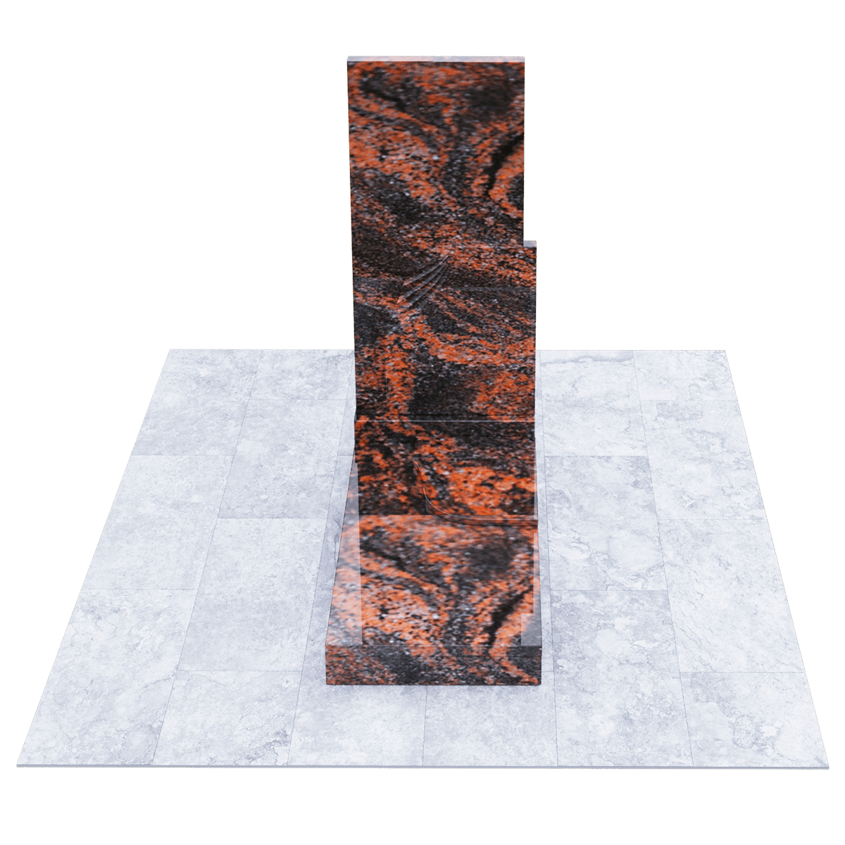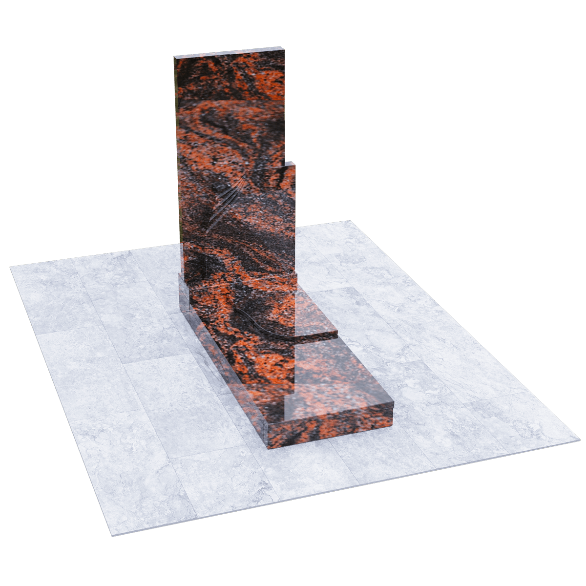 Мемориальный комплекс создан из элитных сортов натурального гранита самых изысканных оттенков, с природным орнаментом сочетания различных минералов в текстуре камня. Производитель использовал полированный камень, который кроме внешней элегантности обладает особой прочностью и легкостью в уходе. Полированная поверхность отталкивает влагу и загрязнения, а структура натурального гранита не подвержена влиянию атмосферных явлений. Срок службы такого изделия неограничен. Памятник предназначен для расположения на могильном традиционном захоронении на участке кладбища и состоит из вертикальной стелы и надгробной плиты, расположенных на прочном основании. Стела декорирована накладкой из камня с элементами гофрировки, на которой гармонично будут смотреться строки эпитафий или художественные элементы, выполненные с помощью гравировки. Такого же цвета каменная накладка в виде невысокого подиума находится на надгробии. На ней можно разместить траурные аксессуары. Сочетания сорта гранита, из которого будет выполнен памятник и общее информационно-художественное оформление комплекса осуществляется по предварительно спланированному индивидуальному проекту.