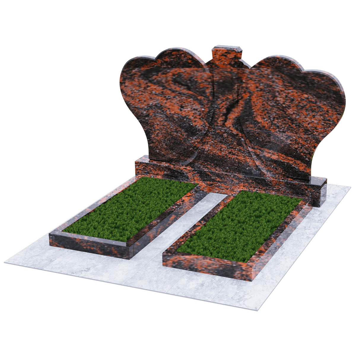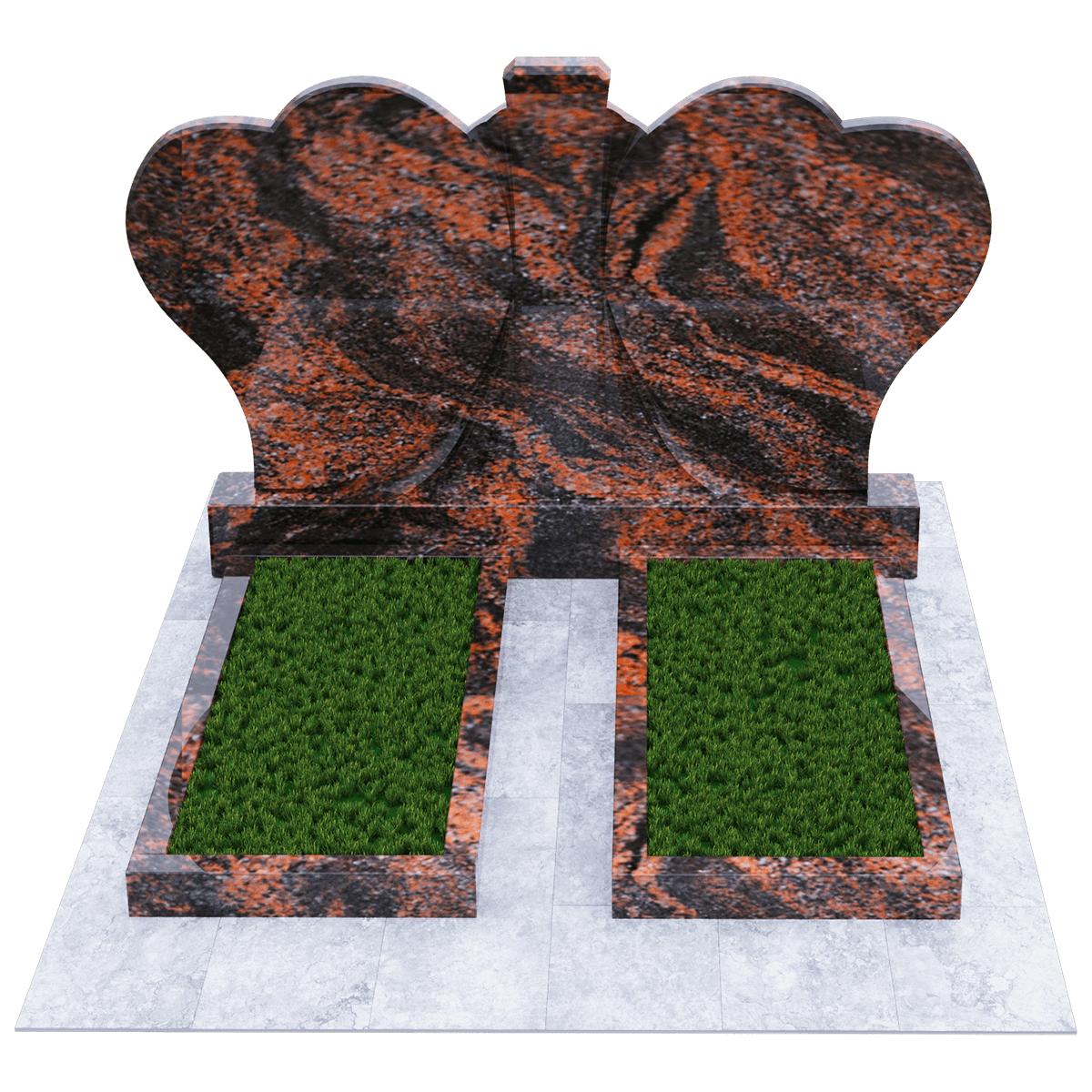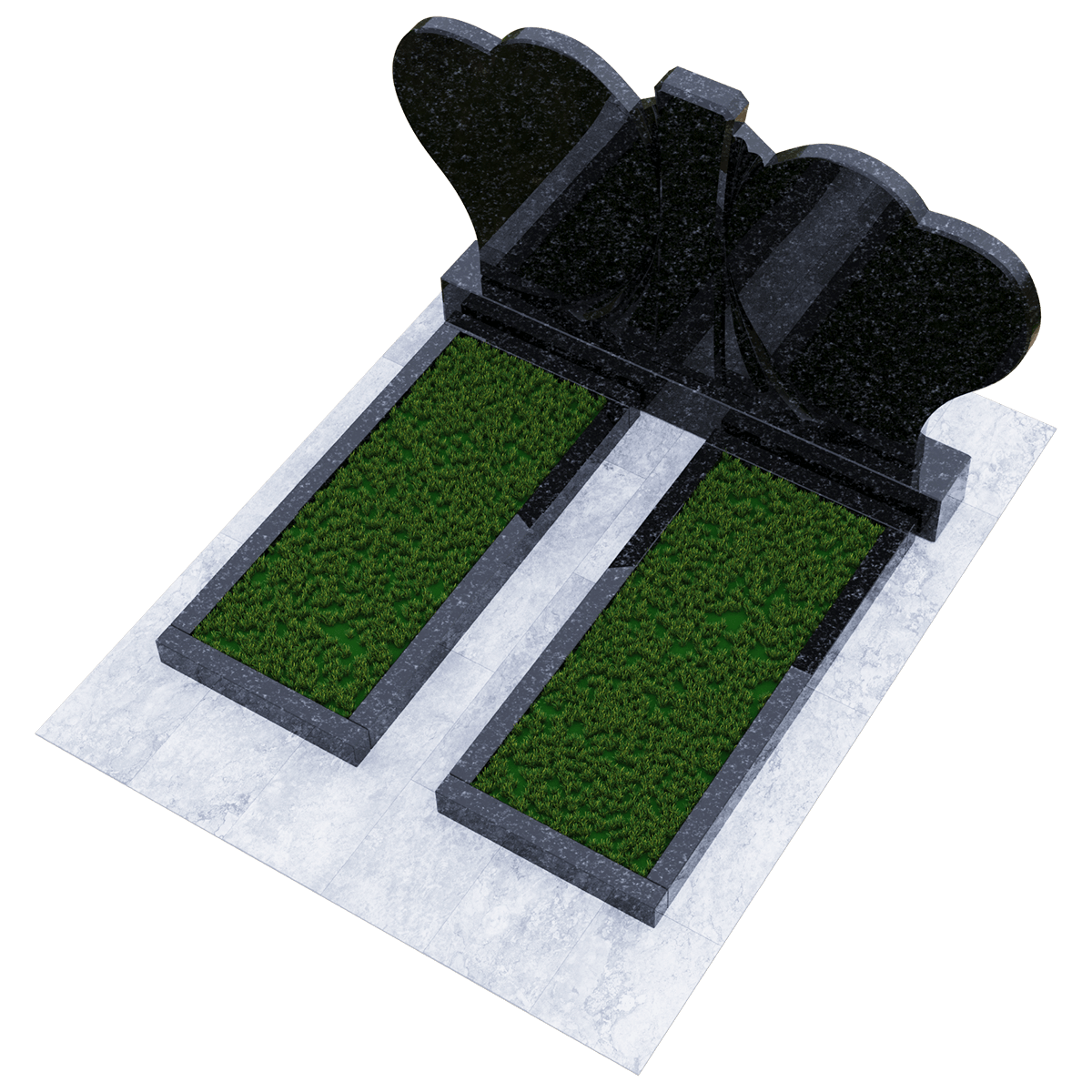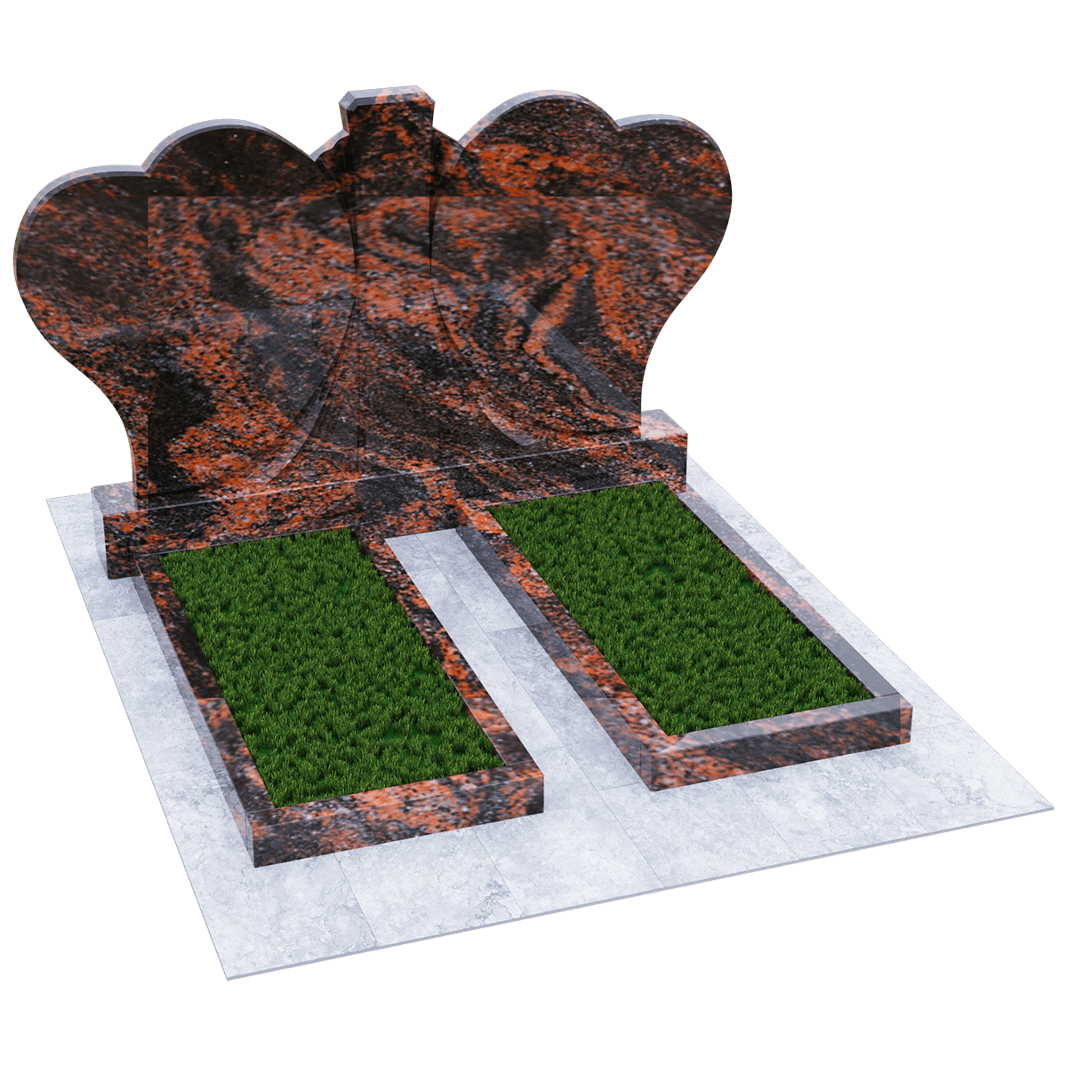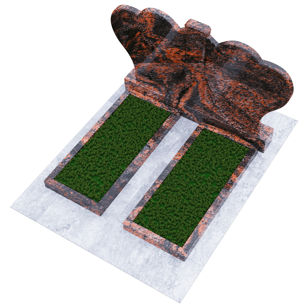Необычного дизайна надмогильное сооружение, выполненное из натурального гранита элитных сортов, предназначено для размещения на участке семейного захоронения. Глянцевая поверхность камня, обработанного методом полировки, с природными вкраплениями и прожилками, в своем колористическом разнообразии является наиболее подходящим материалом для надгробий. Выбирая любой сорт гранита можно быть уверенным, что памятник будет стоять веками, при этом, не теряя своих внешних качеств. Образовавшаяся при воздействии очень высоких температур и давления горная порода приобретает такую прочность, что никакие внешние факторы не могут привести к его разрушению. Уход за мемориалом не предусматривает применения чистящих и защитных средств, так как камень не впитывает влагу и загрязнения и является экологически безопасным. В состав комплекса входят два надгробия в виде прямоугольных открытых цветников с невысокими бортиками и декорированными гранитными накладками-косынками. Массивная широкая балка соединяет в один ансамбль надгробия и стелу, являясь одновременно ее основанием. Трогательный дизайн стелы в виде двух сердец, расположенных зеркально от центральной детали, имитирующей пилястру, говорит о том, что тех, кто упокоился здесь, объединяло великое чувство, соединившее их сердца на века.