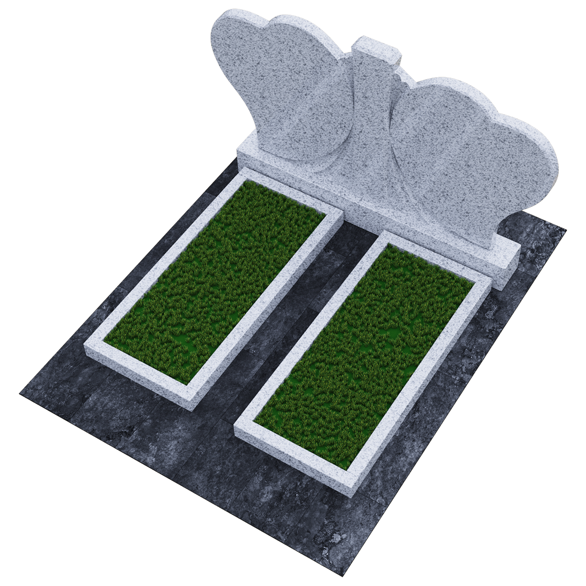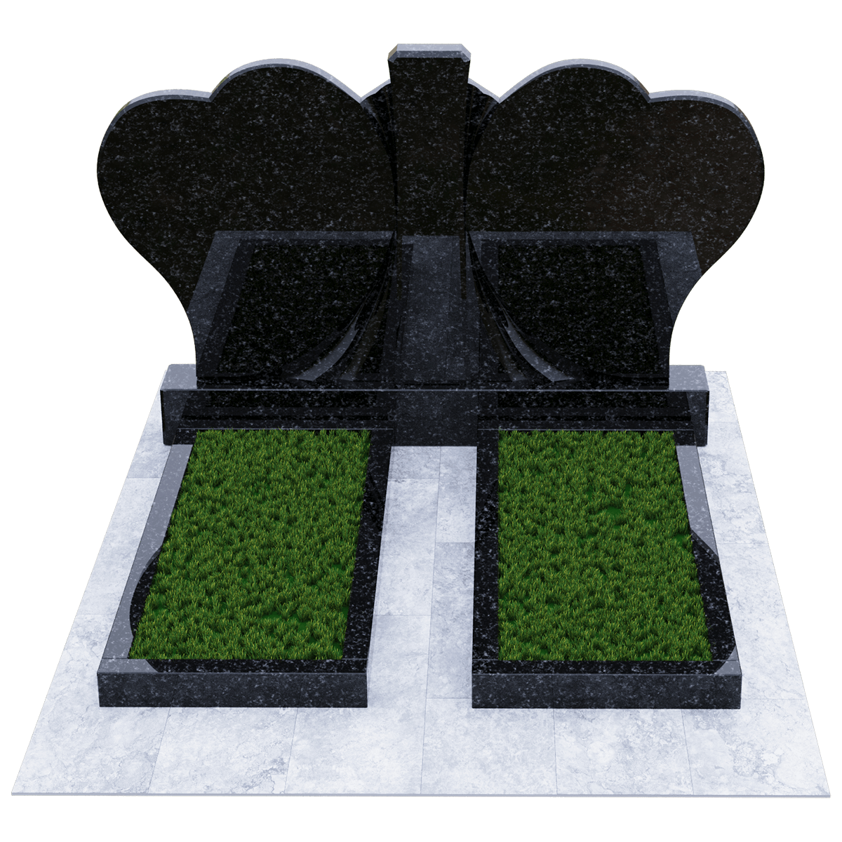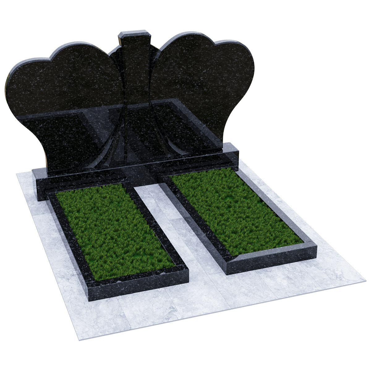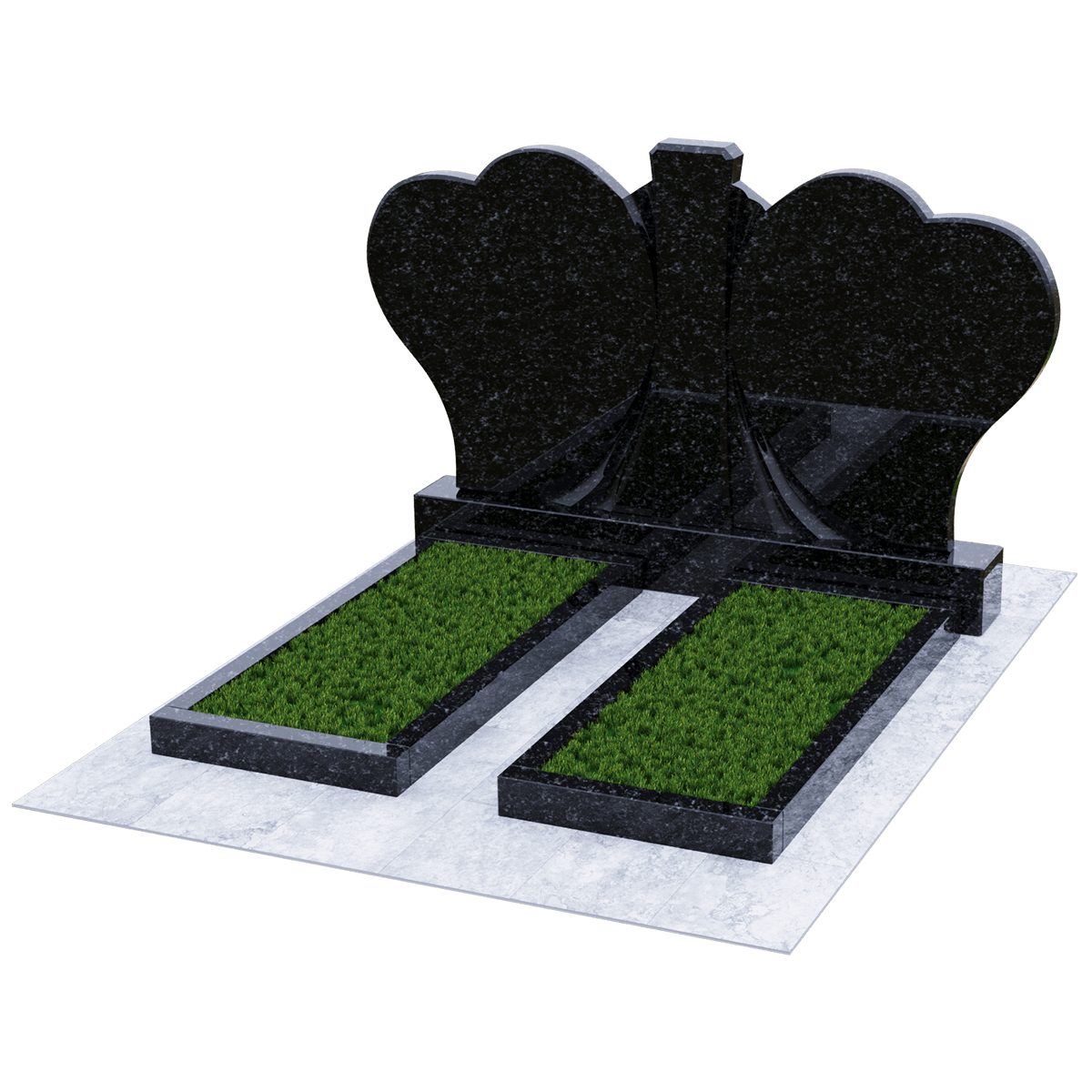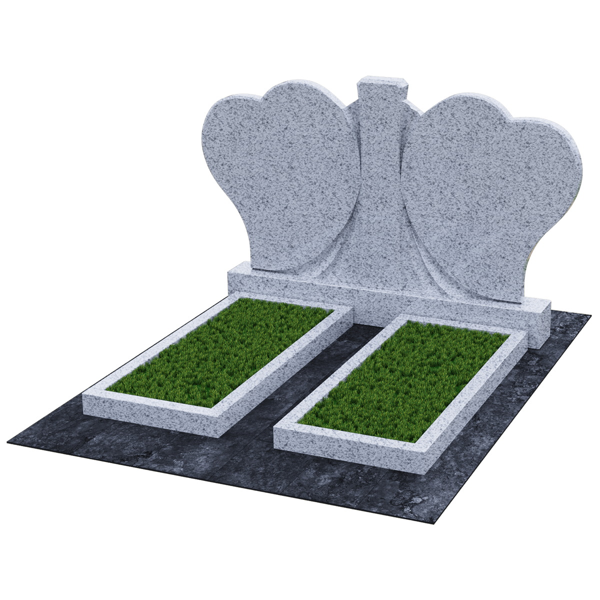 Необычного дизайна надмогильное сооружение, выполненное из натурального гранита элитных сортов, предназначено для размещения на участке семейного захоронения. Глянцевая поверхность камня, обработанного методом полировки, с природными вкраплениями и прожилками, в своем колористическом разнообразии является наиболее подходящим материалом для надгробий. Выбирая любой сорт гранита можно быть уверенным, что памятник будет стоять веками, при этом, не теряя своих внешних качеств. Образовавшаяся при воздействии очень высоких температур и давления горная порода приобретает такую прочность, что никакие внешние факторы не могут привести к его разрушению. Уход за мемориалом не предусматривает применения чистящих и защитных средств, так как камень не впитывает влагу и загрязнения и является экологически безопасным. В состав комплекса входят два надгробия в виде прямоугольных открытых цветников с невысокими бортиками и декорированными гранитными накладками-косынками. Массивная широкая балка соединяет в один ансамбль надгробия и стелу, являясь одновременно ее основанием. Трогательный дизайн стелы в виде двух сердец, расположенных зеркально от центральной детали, имитирующей пилястру, говорит о том, что тех, кто упокоился здесь, объединяло великое чувство, соединившее их сердца на века.