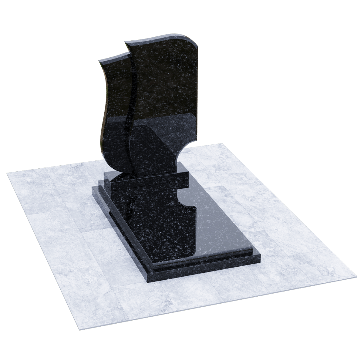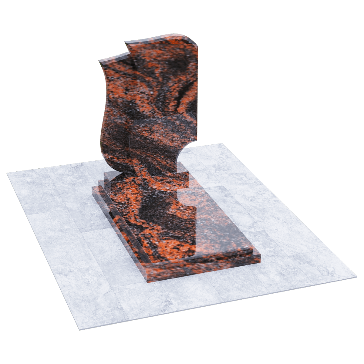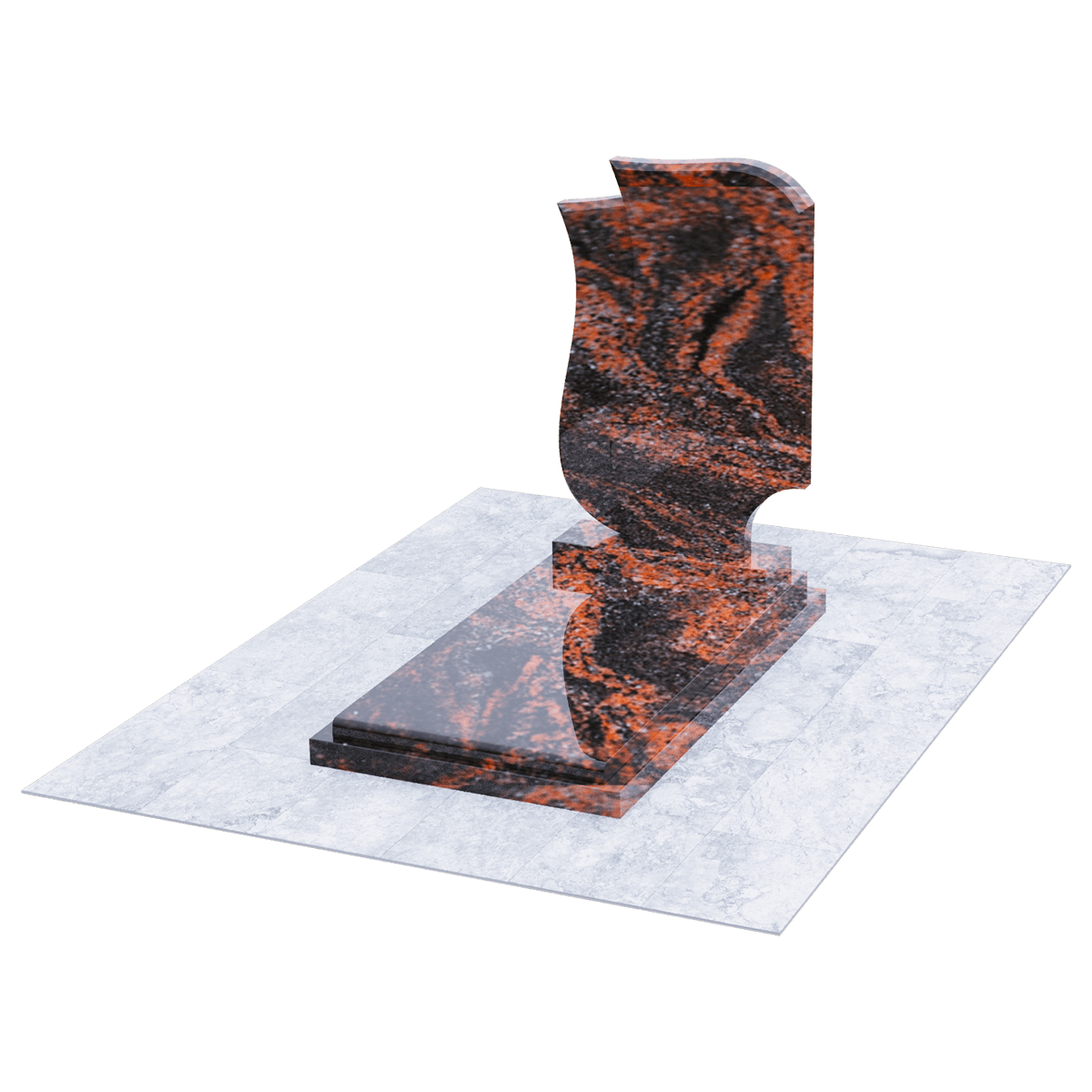 Эксклюзивный памятник из натурального гранита предназначен для расположения на могильном захоронении на участке кладбища. Расширенные габариты изделия и стела, состоящая из двух фрагментов, позволяют применить его на двойном погребении в одну могилу. Дизайнеры, при изготовлении мемориала использовали сорт элитного гранита, обработанного методом полировки. Идеальная глянцевая поверхность камня с естественным природным узором является не только уникальным материалом для надгробия, но и гарантирует его качество, определяющее прочность и долговечность изделия. Камень такого сорта является одной из самых прочных пород, невосприимчивых к внешним факторам и срок их службы не имеет ограничений. Уход заключается в удалении пыльного налета и незначительных загрязнений, без использования химических средств. Основанием памятника служит прямоугольный каркас, на котором расположена надгробная плита с подиумом для стелы. Стела выполнена в виде двух траурных лент, разного цвета, развевающихся от легкого дуновения ветра. Двойная информация и индивидуальное художественное оформление памятника выполняется с помощью высокоточной гравировки.