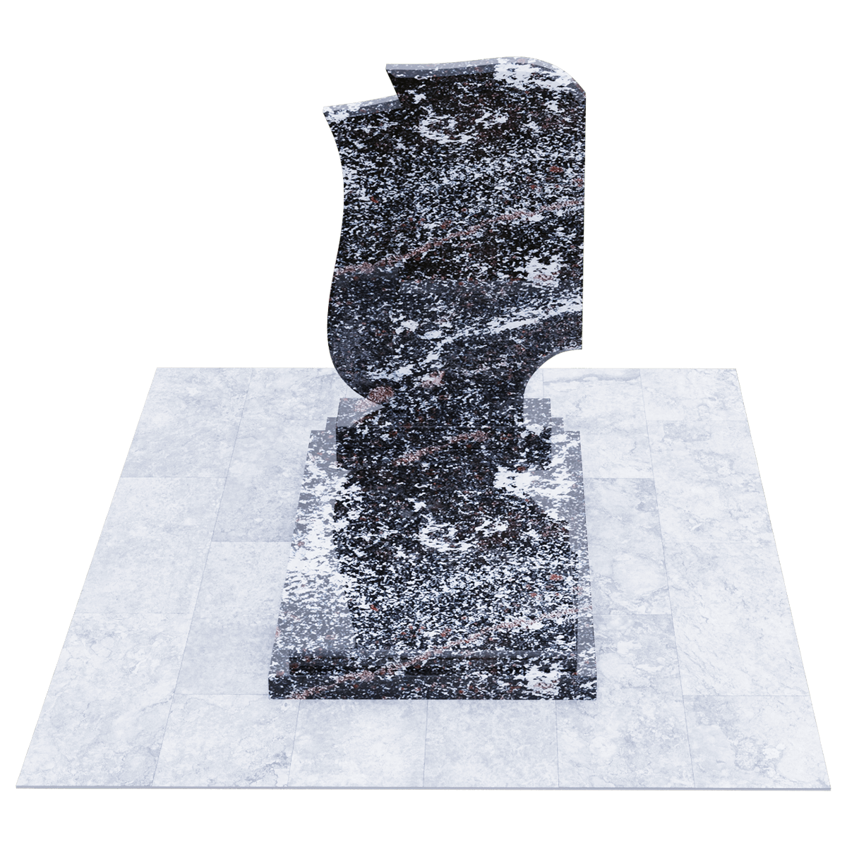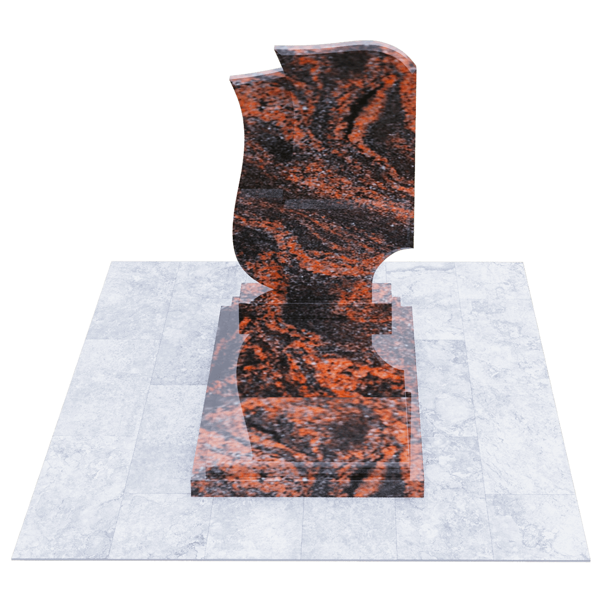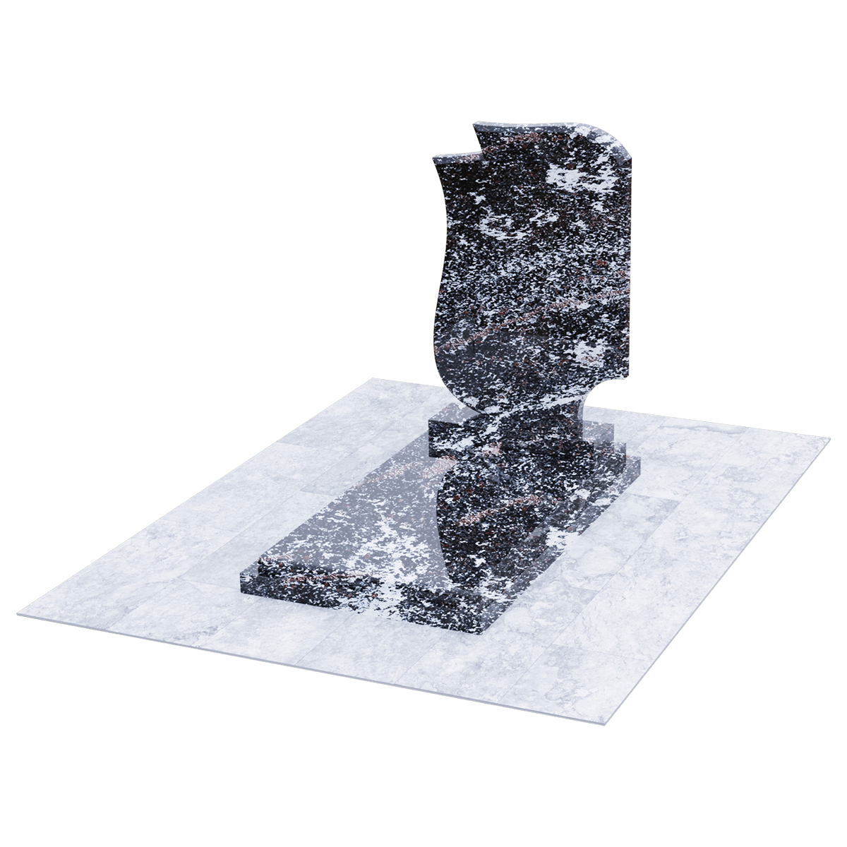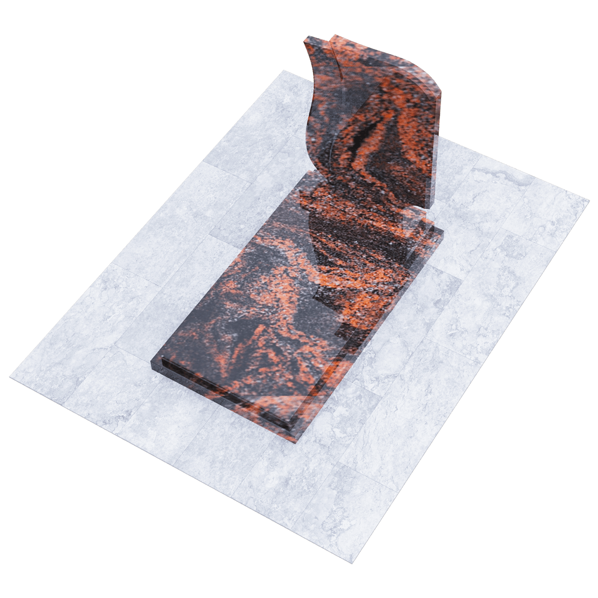 Эксклюзивный памятник из натурального гранита предназначен для расположения на могильном захоронении на участке кладбища. Расширенные габариты изделия и стела, состоящая из двух фрагментов, позволяют применить его на двойном погребении в одну могилу. Дизайнеры, при изготовлении мемориала использовали сорт элитного гранита, обработанного методом полировки. Идеальная глянцевая поверхность камня с естественным природным узором является не только уникальным материалом для надгробия, но и гарантирует его качество, определяющее прочность и долговечность изделия. Камень такого сорта является одной из самых прочных пород, невосприимчивых к внешним факторам и срок их службы не имеет ограничений. Уход заключается в удалении пыльного налета и незначительных загрязнений, без использования химических средств. Основанием памятника служит прямоугольный каркас, на котором расположена надгробная плита с подиумом для стелы. Стела выполнена в виде двух траурных лент, разного цвета, развевающихся от легкого дуновения ветра. Двойная информация и индивидуальное художественное оформление памятника выполняется с помощью высокоточной гравировки.
