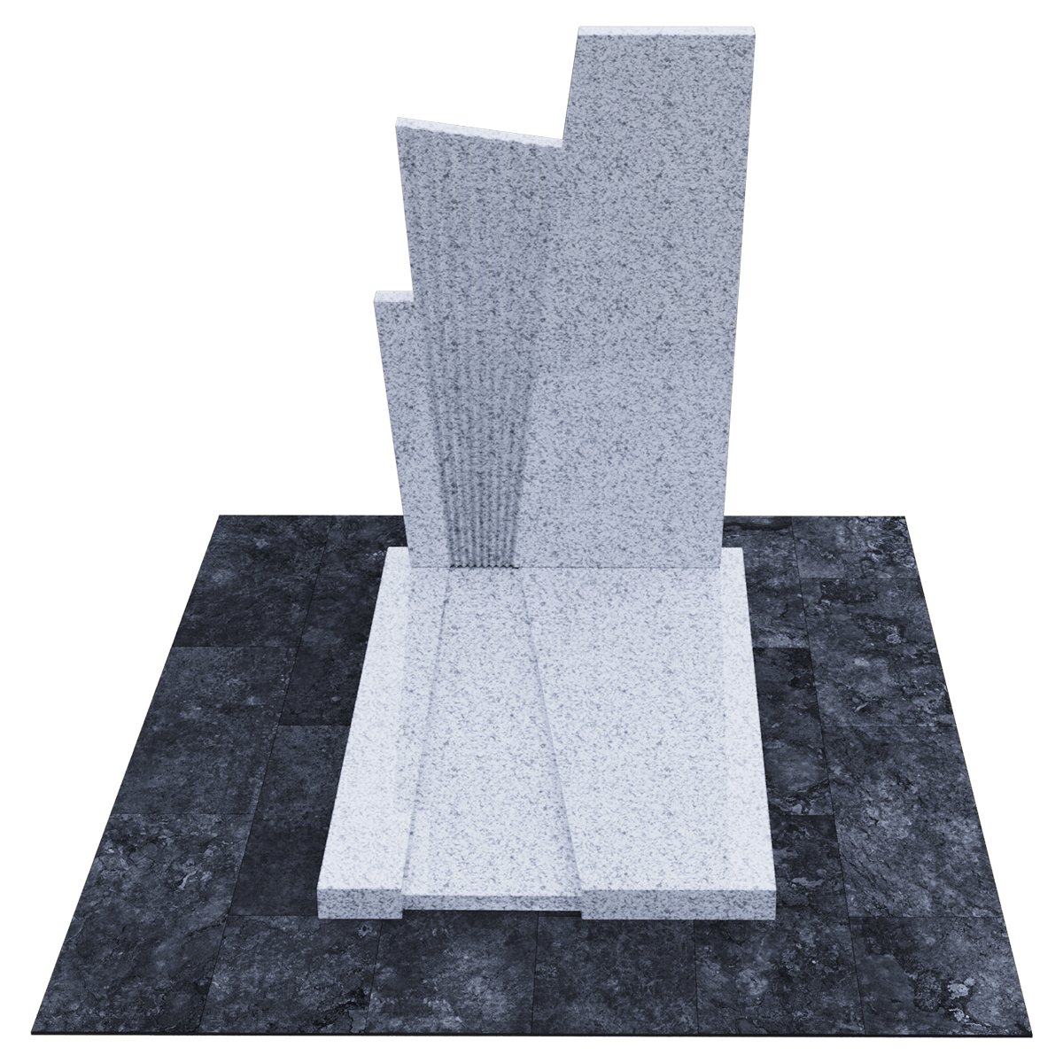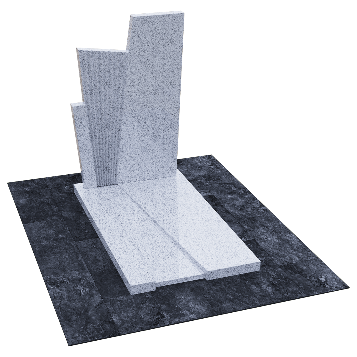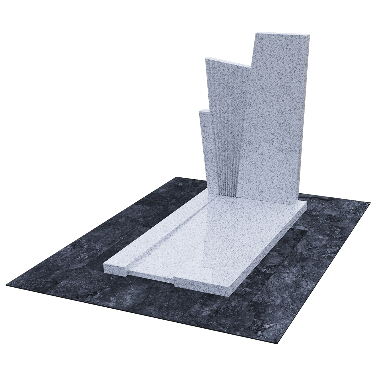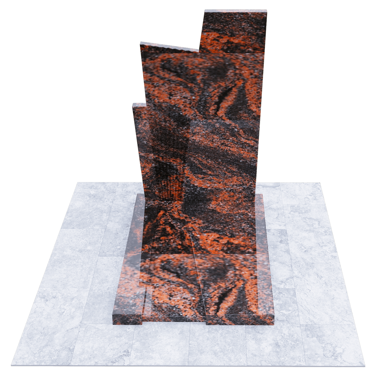 Ритуальное сооружение, предназначенное для расположения на двойном родственном могильном захоронении на кладбище, выполнено с использованием нескольких сортов натурального гранита. Обработанный методом полировки камень, с природными разводами и вкраплениями разноцветных минералов, определяющих его цвет, помимо внешнего торжественного изящества, является и одним из самых прочных и надежных мемориальных сооружений. Не нуждаясь в применении различных защитных средств, памятник будет служить долгие годы, не подвергаясь разрушению от воздействия агрессивной внешней среды, так как его происхождение сопряжено с высоким атмосферным давлением и запредельно высокой температурой. Гранит не выделяет вредных испарений и является абсолютно экологически безопасным материалом. Данный ритуальный комплекс состоит из надгробной плиты и вертикальной стелы. Стела включает в себя три фрагмента разной высоты, расположенных веерообразно. Центральная часть декорирована продольными линиями, имитирующими гофрировку. Форма надгробия зеркально отражает расположение стелы и так же состоит из трех фрагментов разной формы и объема. На полированную поверхность стелы и надгробия методом гравировки наносятся хронологические данные и, по желанию, художественный декор.