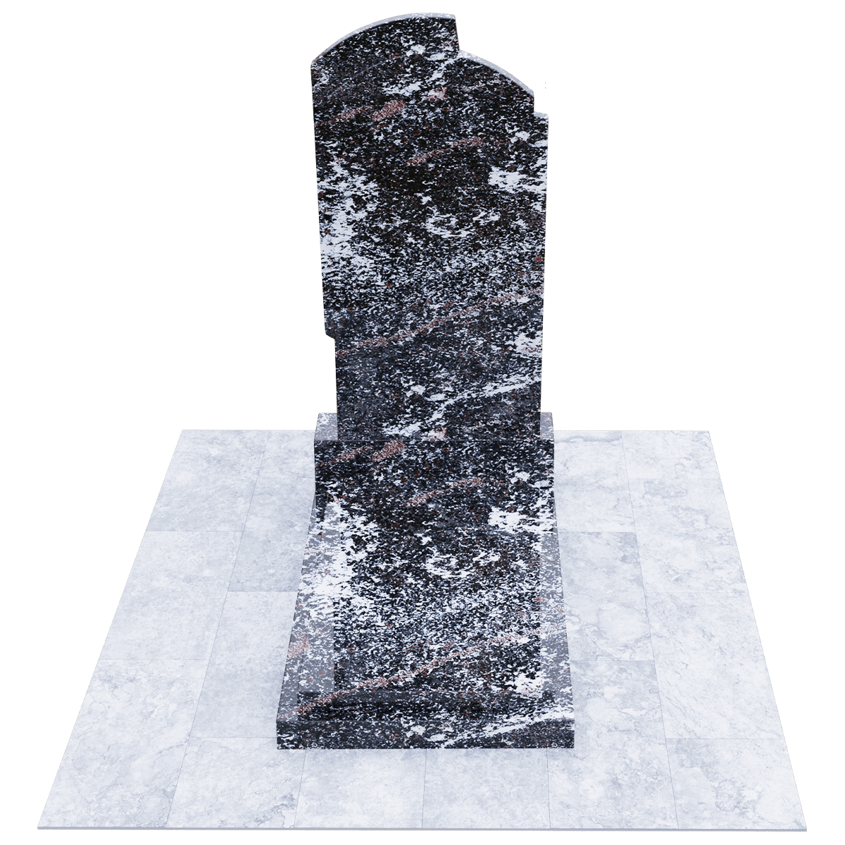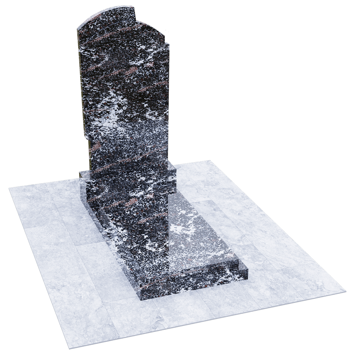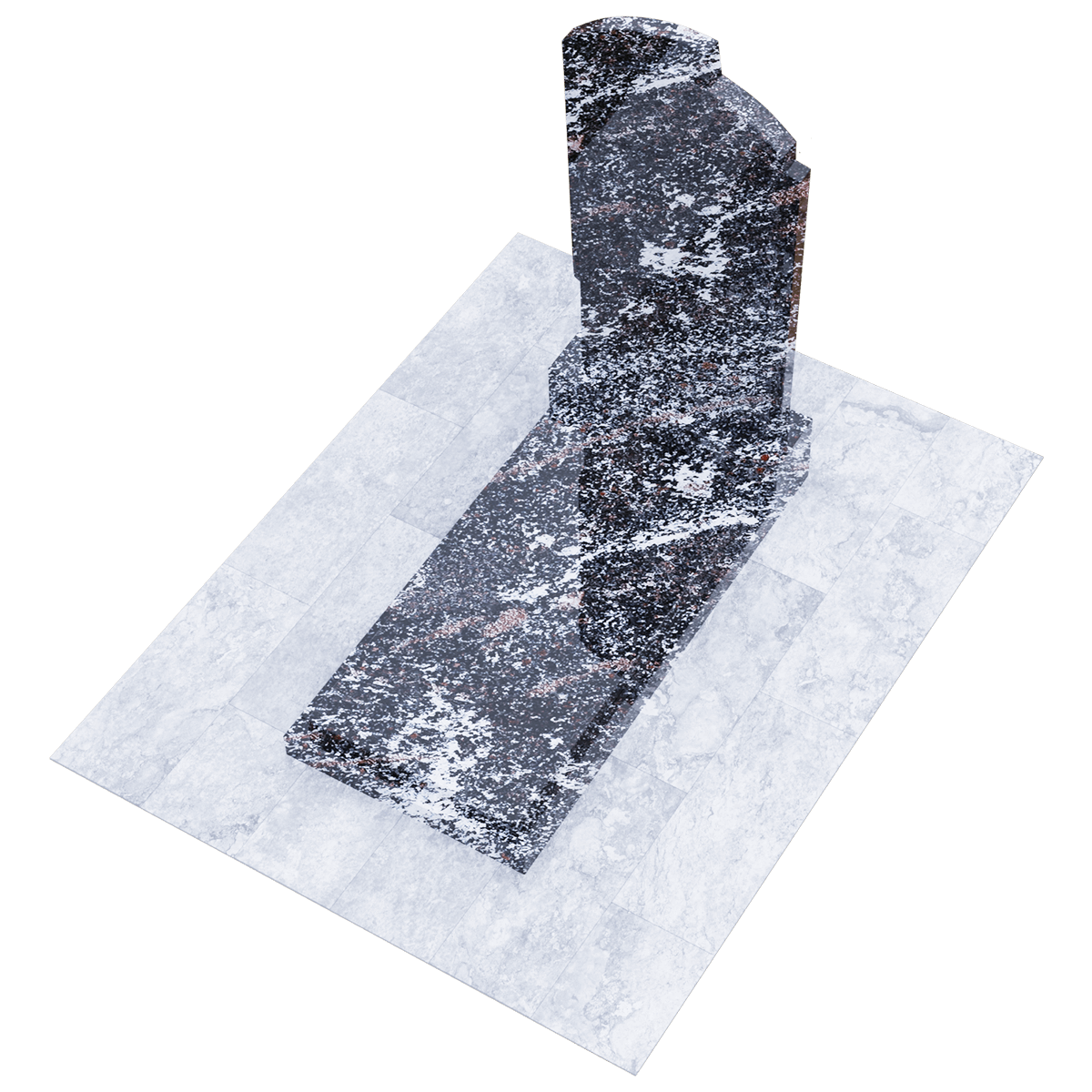 Элегантное ритуальное сооружение, предназначенное для размещения на могильном холме классического погребения на кладбище, разработано по дизайнерскому проекту из элитных сортов натурального гранита. Камень обработан методом полировки. Глянцевая поверхность, с присущим граниту оригинальным орнаментом, как нельзя лучше подходит для изготовления мемориалов, так как еще одним достоинством гранита является его необыкновенная прочность, притом, что он легко поддается любым видам обработки. Полировка придает камню, кроме внешней изысканности еще и устойчивость к разрушительному воздействию сырости и загрязнений. Такой памятник легок в обслуживании и не требует специальных защитных средств. Мемориальный комплекс состоит из основания, выполненного из черного гранита, на которое установлены стела и надгробие из камня того же сорта. Монохромная стела вертикального расположения с арочной верхней кромкой, декорирована с обеих сторон ассиметричными деталями, придающими ей необычный контур. Надгробие наоборот имеет лаконичную прямоугольную форму и состоит из строго очерченной плиты, размещенной на основании. Надписи и индивидуальный декор наносятся на плиту методом гравировки.