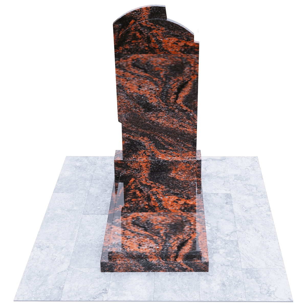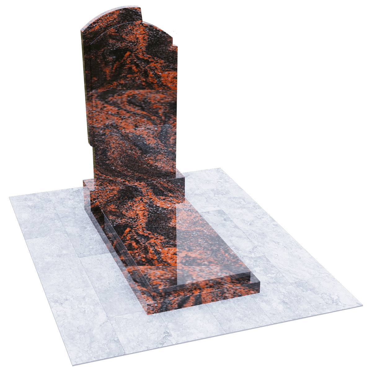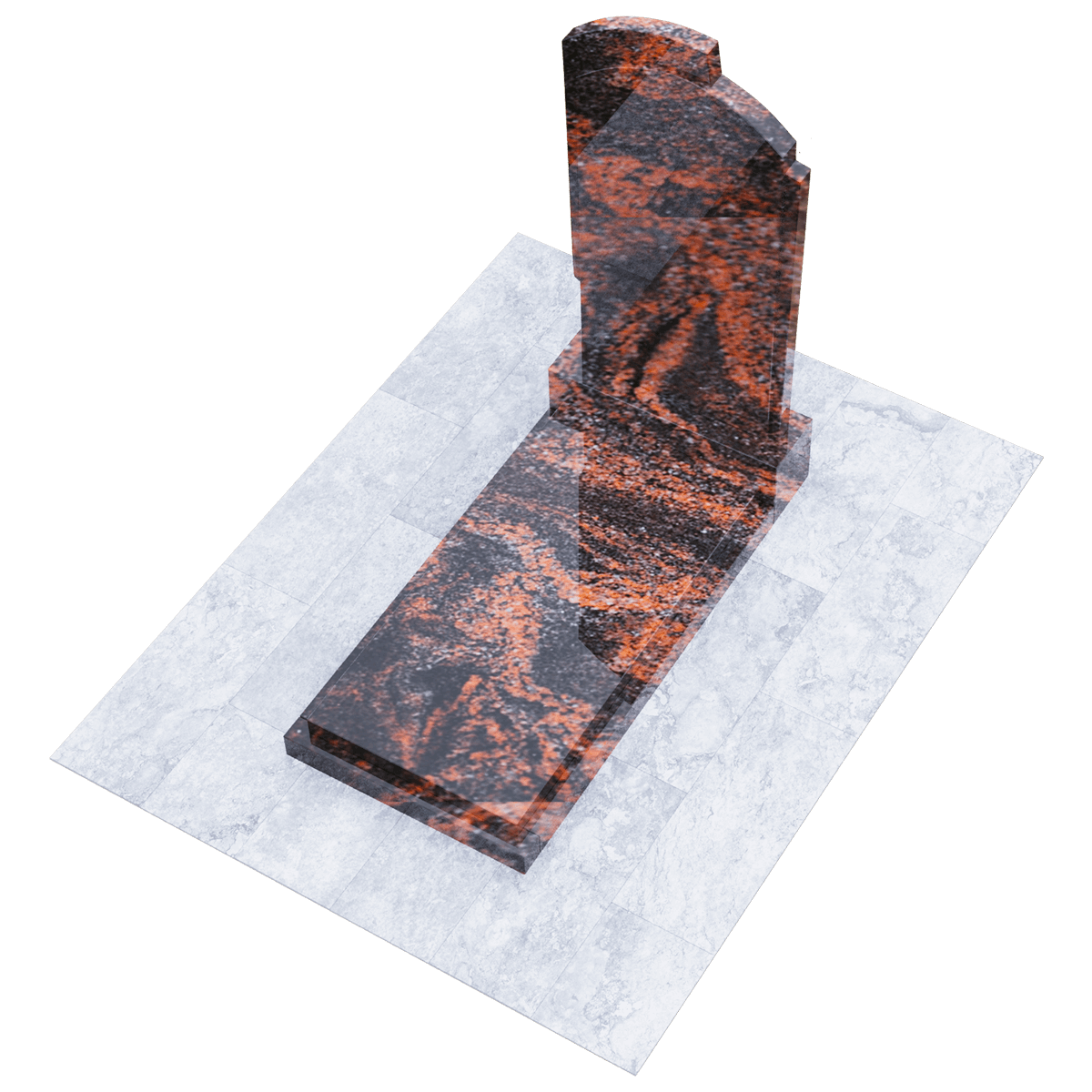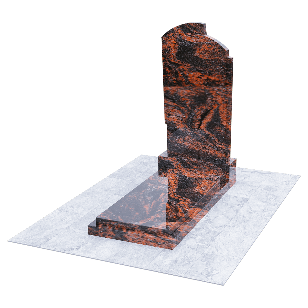 Элегантное ритуальное сооружение, предназначенное для размещения на могильном холме классического погребения на кладбище, разработано по дизайнерскому проекту из элитных сортов натурального гранита. Камень обработан методом полировки. Глянцевая поверхность, с присущим граниту оригинальным орнаментом, как нельзя лучше подходит для изготовления мемориалов, так как еще одним достоинством гранита является его необыкновенная прочность, притом, что он легко поддается любым видам обработки. Полировка придает камню, кроме внешней изысканности еще и устойчивость к разрушительному воздействию сырости и загрязнений. Такой памятник легок в обслуживании и не требует специальных защитных средств. Мемориальный комплекс состоит из основания, выполненного из черного гранита, на которое установлены стела и надгробие из камня того же сорта. Монохромная стела вертикального расположения с арочной верхней кромкой, декорирована с обеих сторон ассиметричными деталями, придающими ей необычный контур. Надгробие наоборот имеет лаконичную прямоугольную форму и состоит из строго очерченной плиты, размещенной на основании. Надписи и индивидуальный декор наносятся на плиту методом гравировки.