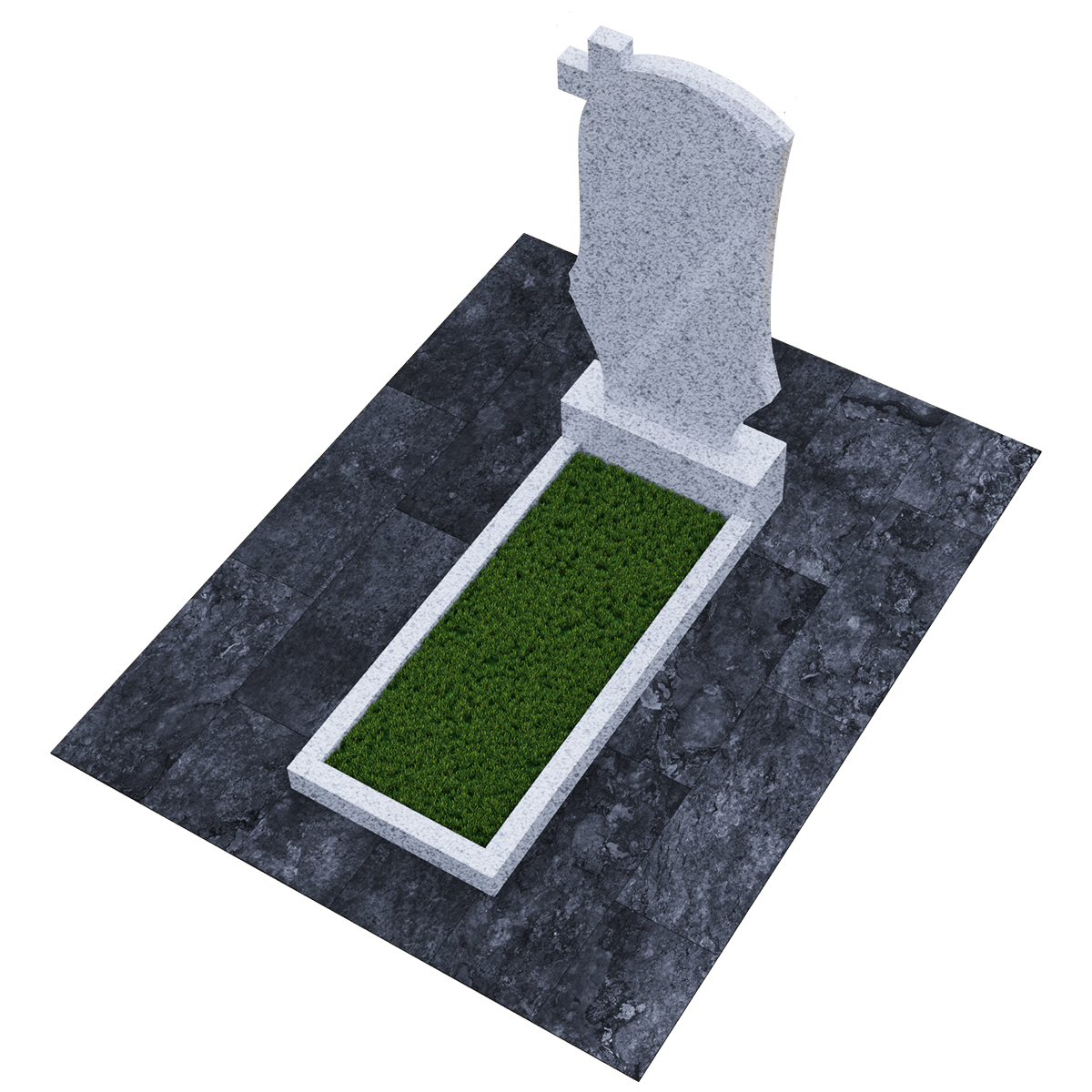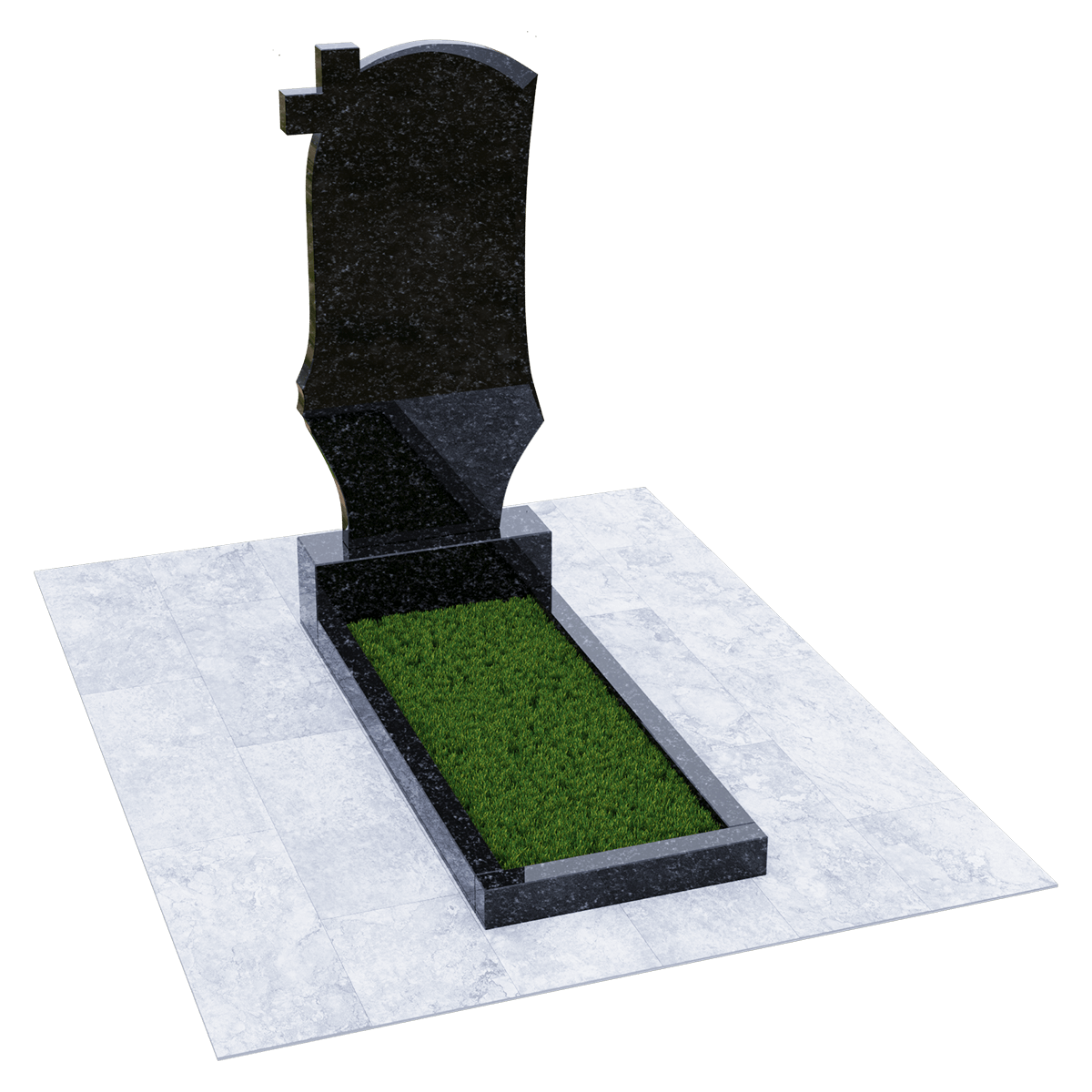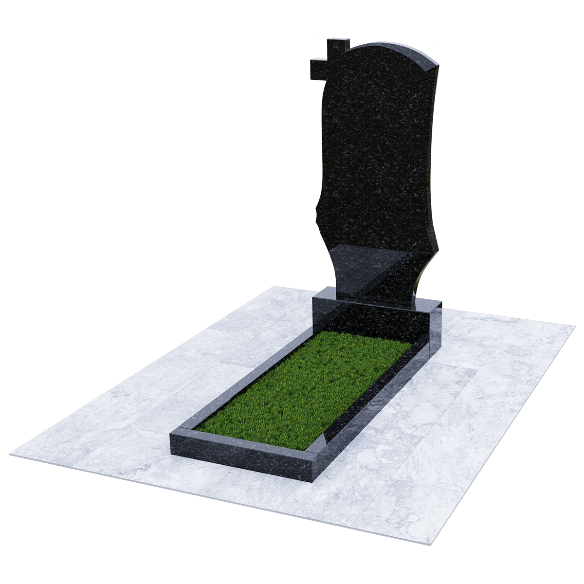 Гранитный комплекс ритуального назначения устанавливается на классические захоронения на кладбище. Выполнен производителем из натурального полированного мелкозернистого камня черного цвета с характерными вкраплениями и прожилками, присущими граниту. Эстетичный и высокопрочный материал идеально подходит для данного изделия, располагаемого под открытым небом. Так как гранит является камнем, который не подвержен воздействию климатических и бактериологических проявлений окружающей среды. Основанием данного комплекса является массивная плита, на которой прочно установлена стела овальной формы с как бы срезанным краем, слева на округлой части высечен христианский крест. В горизонтальном расположении к основанию прилегает прямоугольный цветник с невысокими бортиками. Можно перепланировать форму цветника, используя дополнительные гранитные плитки с изящно изогнутой кромкой, накладываемые на бортики цветника. Как вариант, открытый цветник можно перекрыть сплошным надгробием. Один из множества разнообразных вариантов художественного оформления надгробия можно выбрать по каталогу. Изображение наносится на поверхность стелы современными гравировальными технологиями.