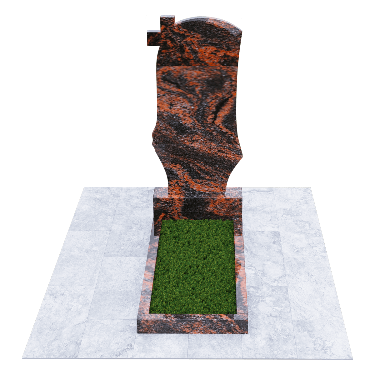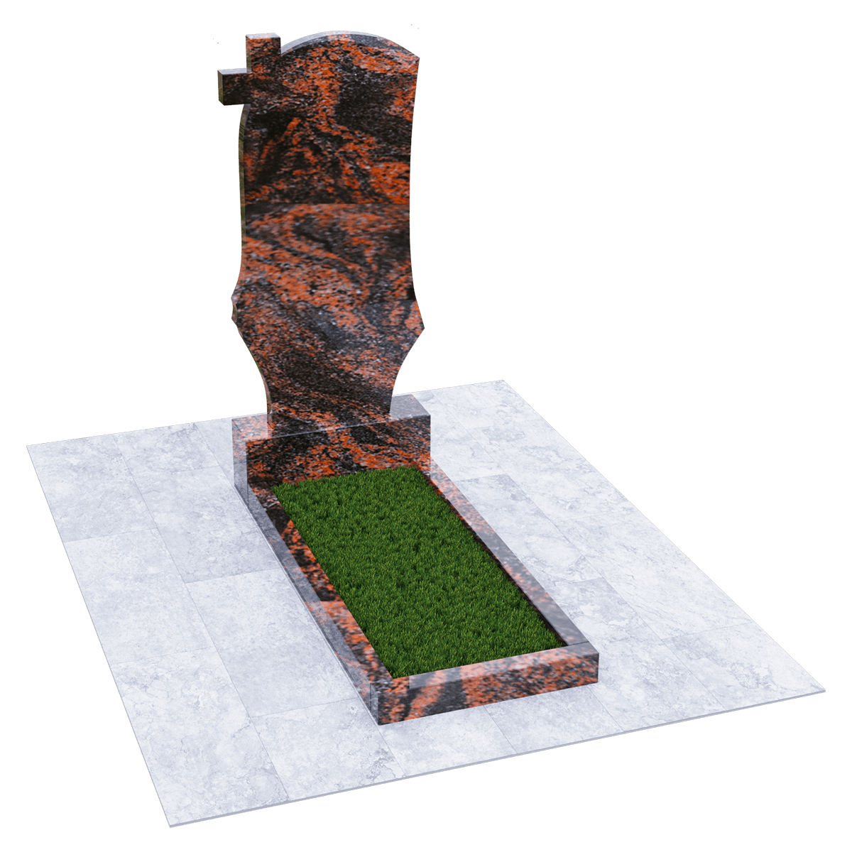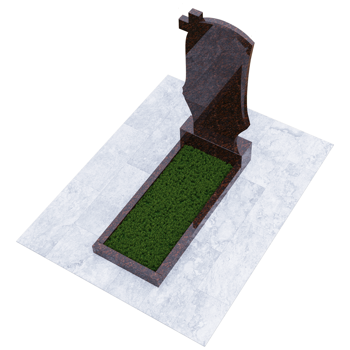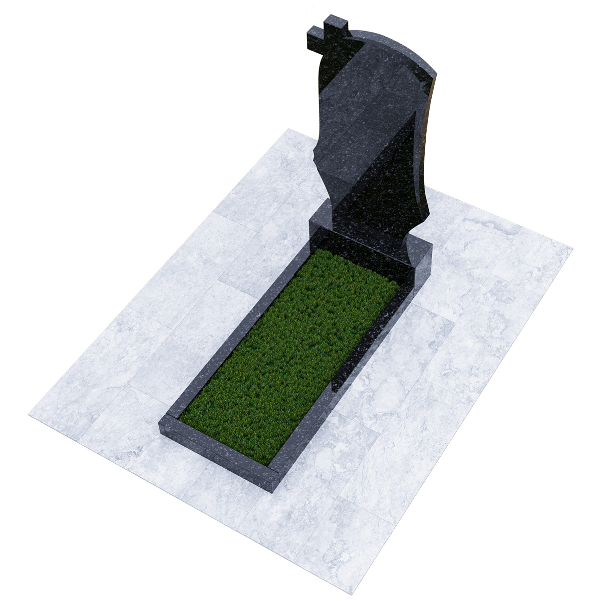 Гранитный комплекс ритуального назначения устанавливается на классические захоронения на кладбище. Выполнен производителем из натурального полированного мелкозернистого камня черного цвета с характерными вкраплениями и прожилками, присущими граниту. Эстетичный и высокопрочный материал идеально подходит для данного изделия, располагаемого под открытым небом. Так как гранит является камнем, который не подвержен воздействию климатических и бактериологических проявлений окружающей среды. Основанием данного комплекса является массивная плита, на которой прочно установлена стела овальной формы с как бы срезанным краем, слева на округлой части высечен христианский крест. В горизонтальном расположении к основанию прилегает прямоугольный цветник с невысокими бортиками. Можно перепланировать форму цветника, используя дополнительные гранитные плитки с изящно изогнутой кромкой, накладываемые на бортики цветника. Как вариант, открытый цветник можно перекрыть сплошным надгробием. Один из множества разнообразных вариантов художественного оформления надгробия можно выбрать по каталогу. Изображение наносится на поверхность стелы современными гравировальными технологиями.