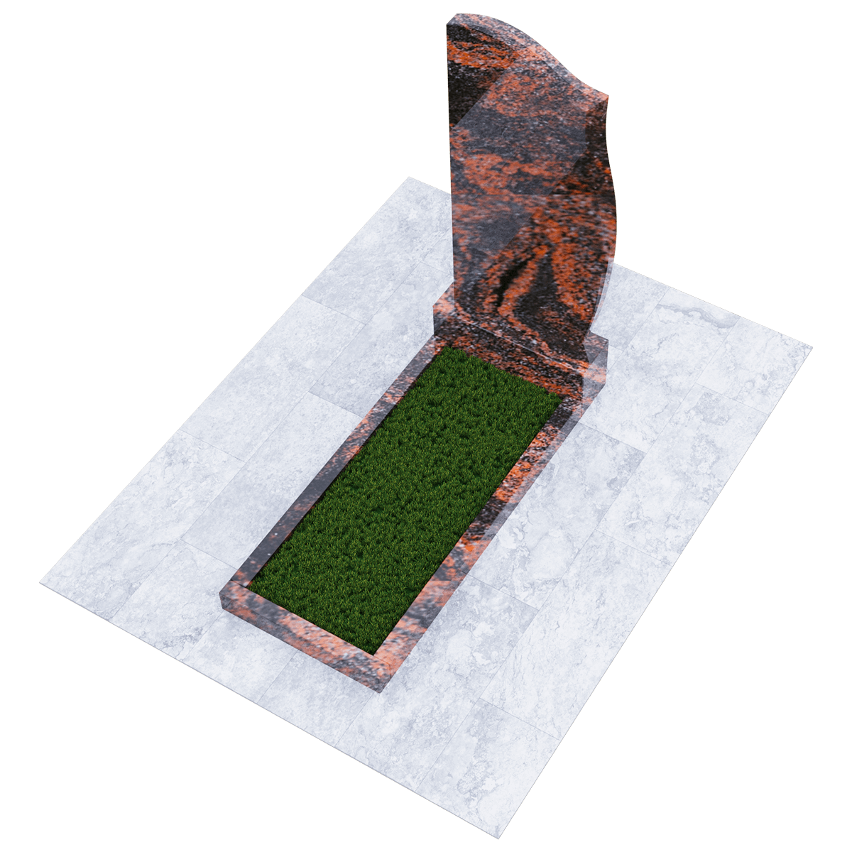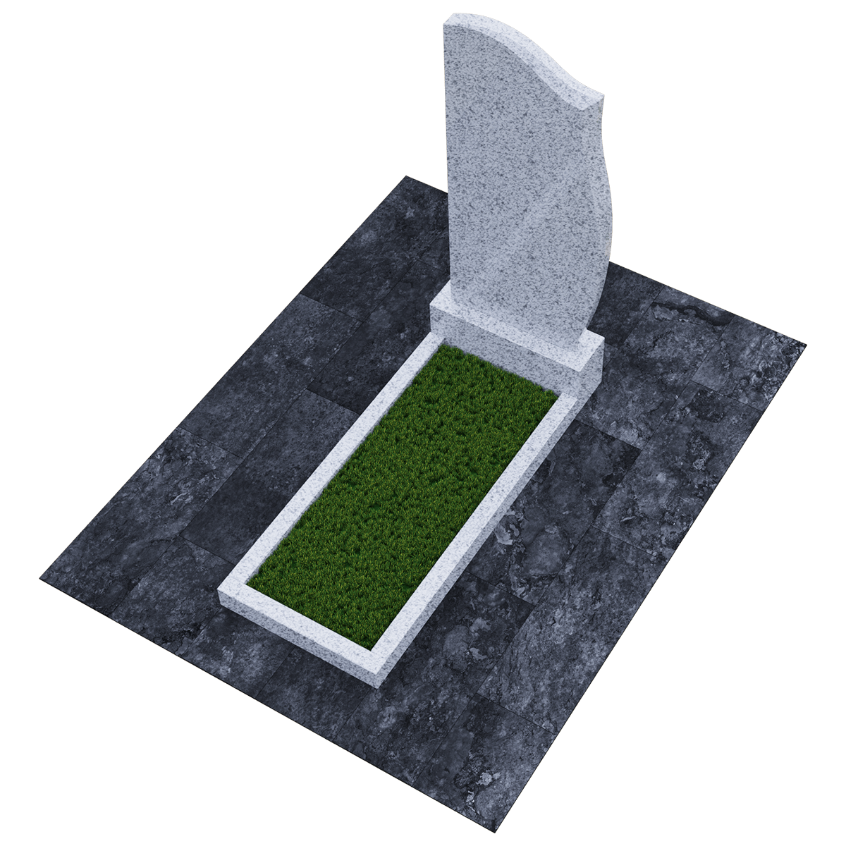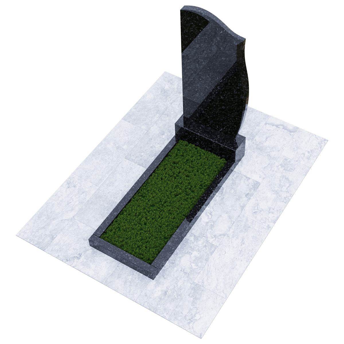 Мемориальный комплекс изготовленный из натурального шлифованного гранита мелкозернистой структуры. Черный цвет камня с присущими ему натуральными вкраплениями пород как нельзя лучше подходит для изготовления памятников, предназначенных для размещения на кладбище, на могильном холме. Ведь именно гранит не восприимчив к агрессивному влиянию неблагоприятных погодных условий и грибковых заражений. Уход за таким материалом заключается в удалении пыльного налета и не предполагает использования никаких химических средств. Комплекс состоит из массивного основания и примыкающих к нему стелы и прямоугольного цветника, который может быть заменен сплошным надгробием. Так же можно конструировать внутреннее очертание цветника с помощью специальных дополнительных гранитных накладок с извилистой кромкой. Дизайн стелы напоминает застывший на ветру кусок полотна, на котором можно эстетично разместить портрет покойного, хронологические данные, а также памятные слова. По желанию, возможно выбрать по каталогу изысканное художественное оформление памятника с использованием современных технологий нанесения рисунка на камень.