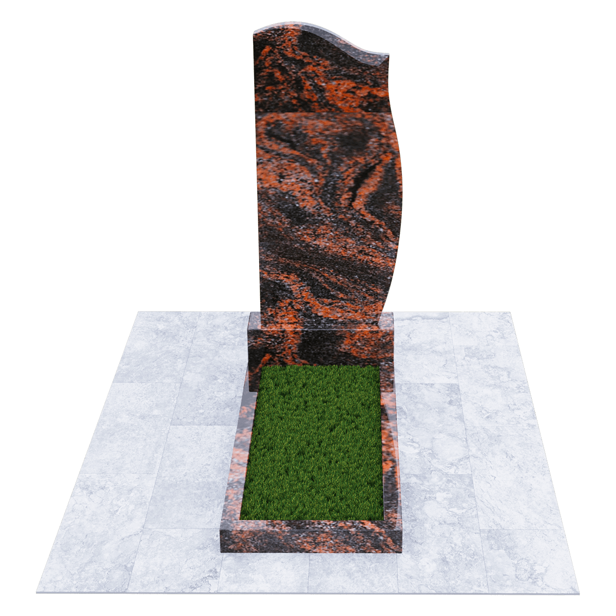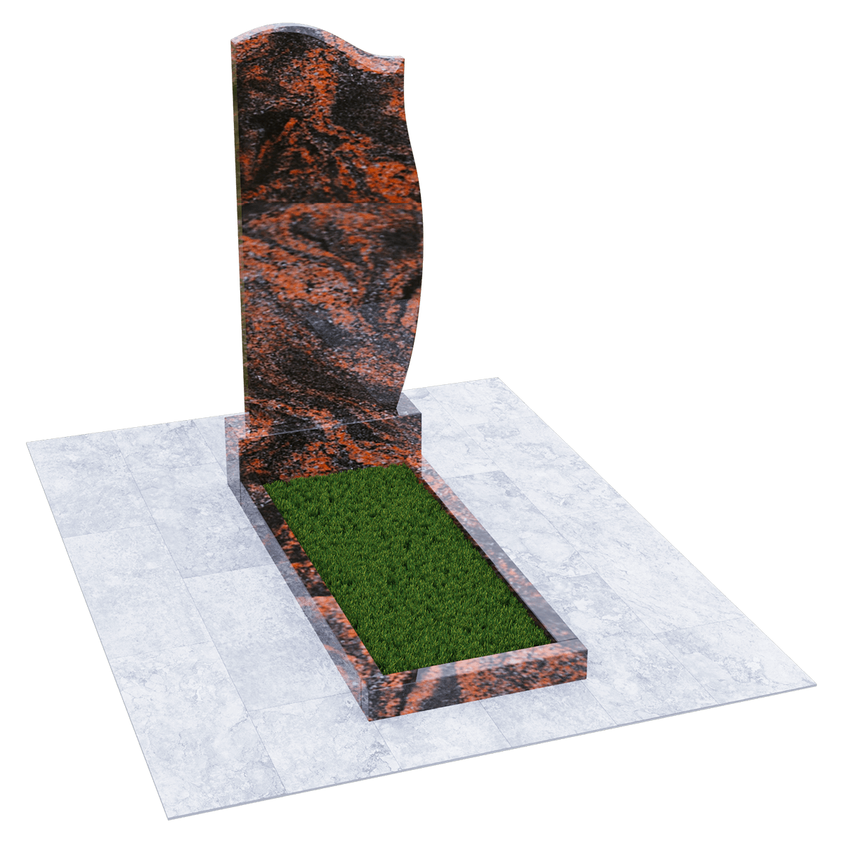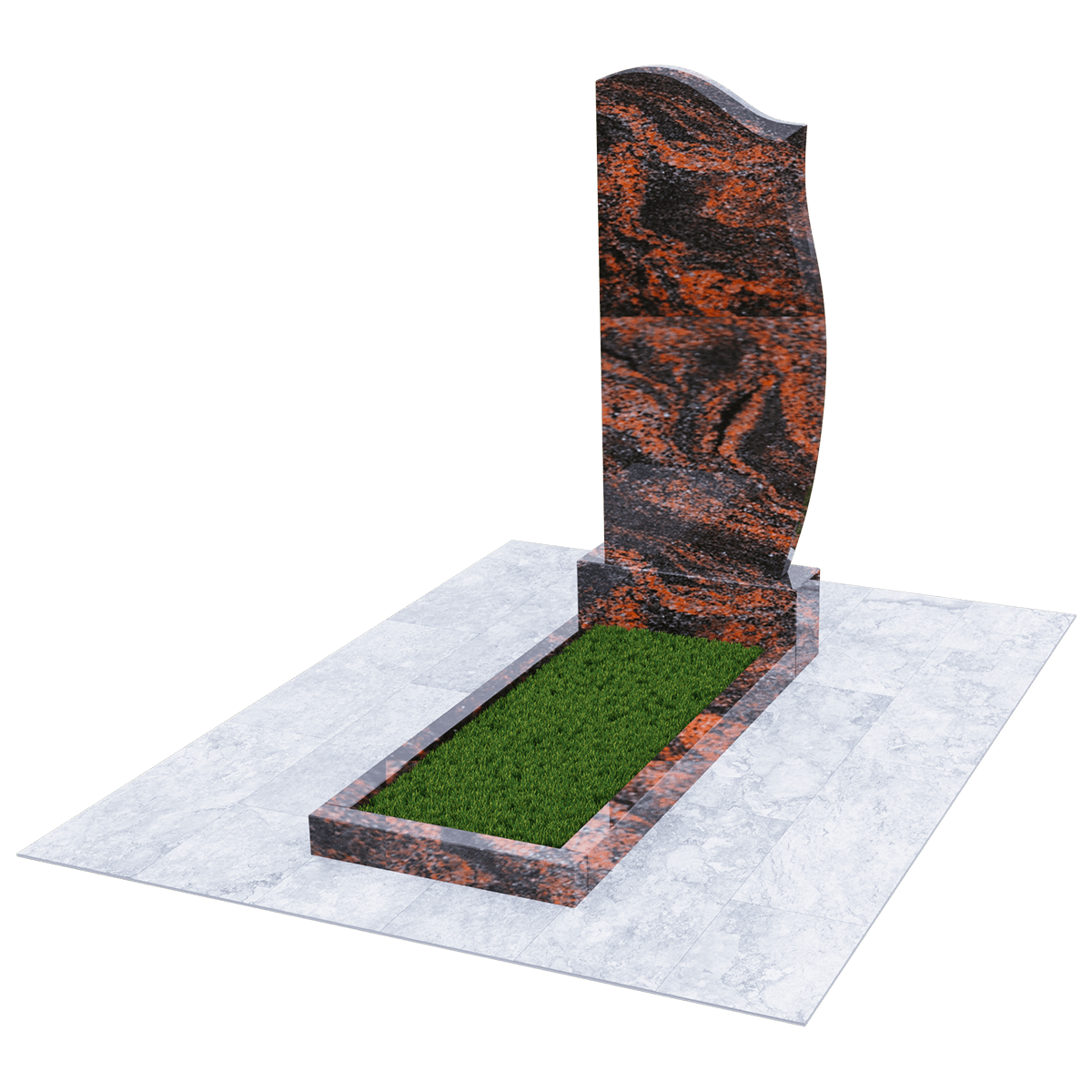 Мемориальный комплекс изготовленный из натурального шлифованного гранита мелкозернистой структуры. Черный цвет камня с присущими ему натуральными вкраплениями пород как нельзя лучше подходит для изготовления памятников, предназначенных для размещения на кладбище, на могильном холме. Ведь именно гранит не восприимчив к агрессивному влиянию неблагоприятных погодных условий и грибковых заражений. Уход за таким материалом заключается в удалении пыльного налета и не предполагает использования никаких химических средств. Комплекс состоит из массивного основания и примыкающих к нему стелы и прямоугольного цветника, который может быть заменен сплошным надгробием. Так же можно конструировать внутреннее очертание цветника с помощью специальных дополнительных гранитных накладок с извилистой кромкой. Дизайн стелы напоминает застывший на ветру кусок полотна, на котором можно эстетично разместить портрет покойного, хронологические данные, а также памятные слова. По желанию, возможно выбрать по каталогу изысканное художественное оформление памятника с использованием современных технологий нанесения рисунка на камень.