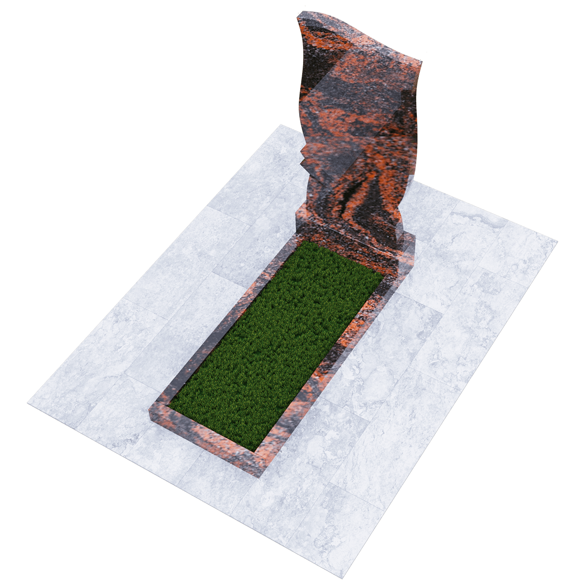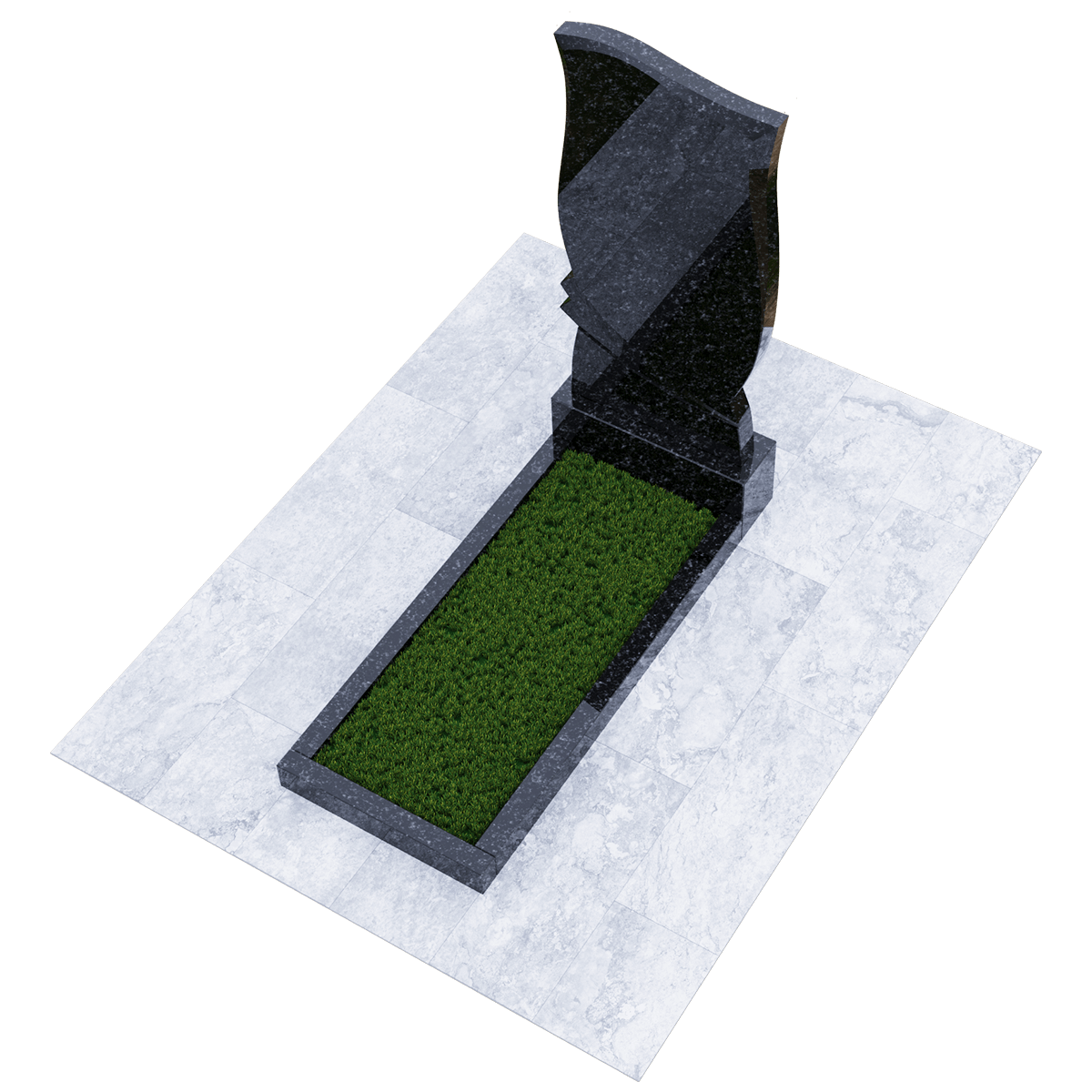 Выполненный из натурального гранита ритуальный комплекс предназначен для установки на традиционное захоронение на кладбище. Полированный мелкозернистый камень черного цвета с природными вкраплениями пород в текстуру является не только весьма красивым, но и одним из самых прочных, поэтому как нельзя лучше подходит для надгробий. Ведь он не впитывает ни влагу, ни грязь, не требует защитных пропиток и служит много десятков лет, довольствуясь минимальным уходом. Дизайнерским решением было выполнение стелы памятника в виде куска траурной ленты, слегка приспущенной в печальном молчании. В комплекс так же входит цветник простой прямоугольной формы, который можно трансформировать с помощью гранитных косынок с одной или обеих торцевых сторон. Это придаст цветнику более изящный облик. Как вариант можно заменить цветник на сплошное надгробие. Персональная информация наносится на поверхность памятника методом гравировки, которая является наиболее эстетичной и долговечной. Есть возможность выбрать по каталогу полное или частичное художественное оформление мемориала.
