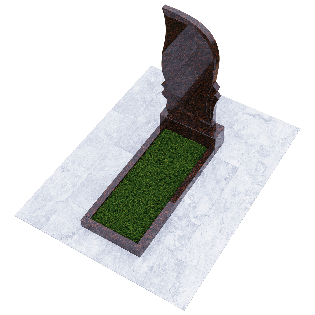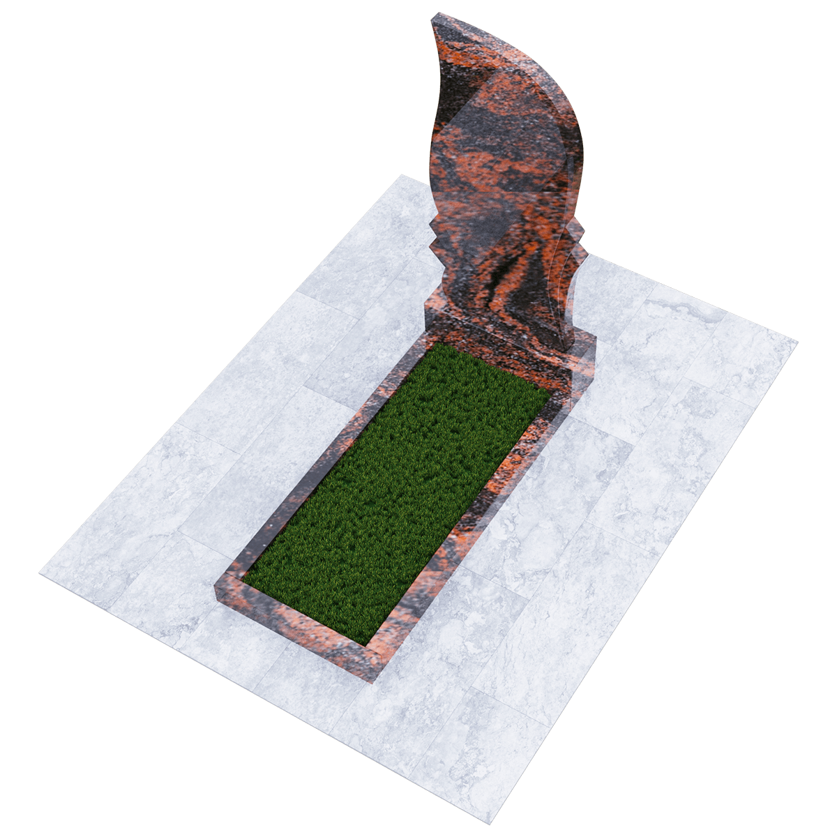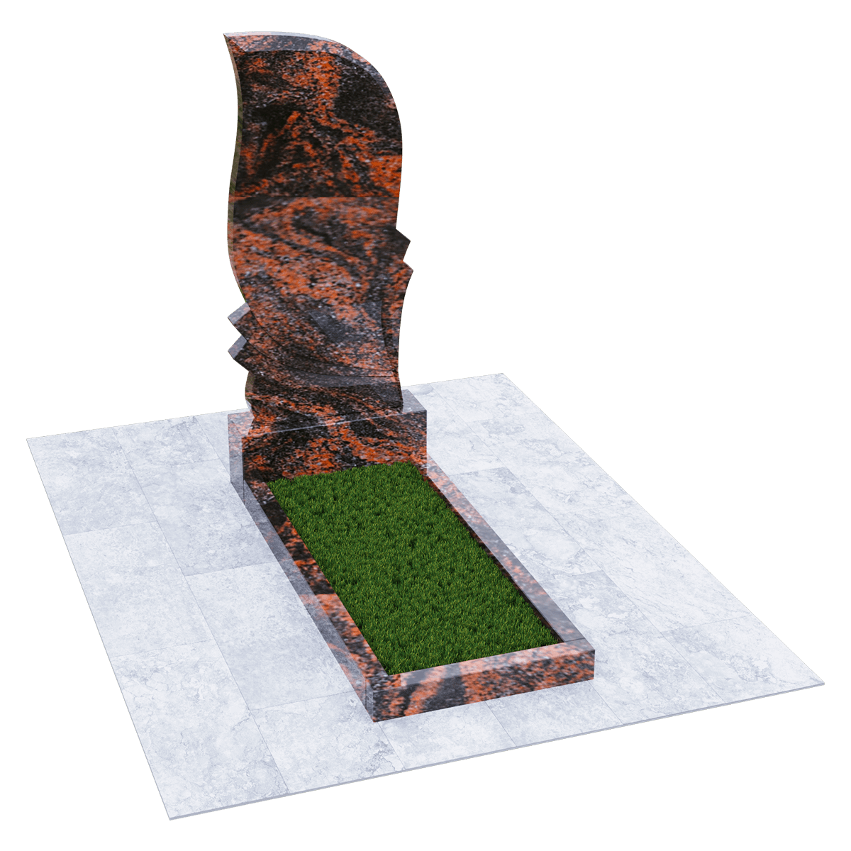 Мемориальный комплекс для установки на могильный холм при классическом погребении на кладбище. Выполнен из высококачественного натурального гранита, обработанного методом полировки. Материал такого качества идеален для производства надгробий. Мелкозернистая текстура с природным орнаментом выглядит очень эстетично. Но главное преимущество такого надгробия – это прочность. Внешние климатические условия в своей переменчивости не влияют на состояние камня, и он абсолютно не впитывает влагу и грязь. Памятник не изменит своего внешнего вида, не требуя при этом особого ухода, кроме удаления пыльного налета. Данный мемориальный комплекс состоит из вертикальной стелы, прочного основания и цветника. Стела своим обликом напоминает пламя вечного огня, горящего в память об ушедших родных и близких. Цветник прямоугольной формы предполагает некоторую трансформацию своих форм с помощью дополнительных гранитных накладок. Либо заменяется на глухую гранитную надгробную плиту. Информация о захоронении, дополненная портретом, эпитафиями и художественным декором наносится на поверхность гравировкой.