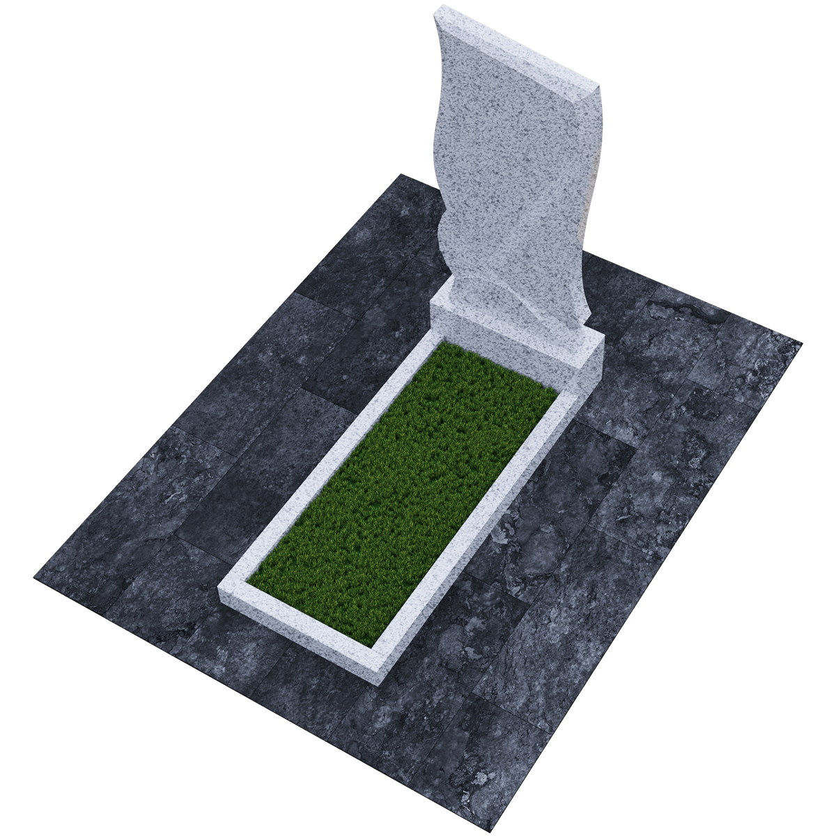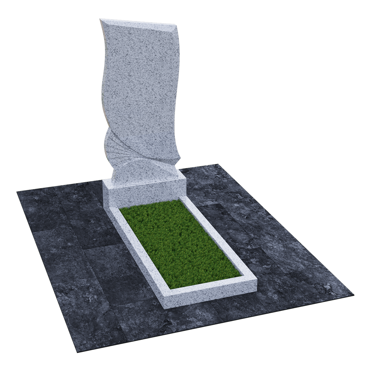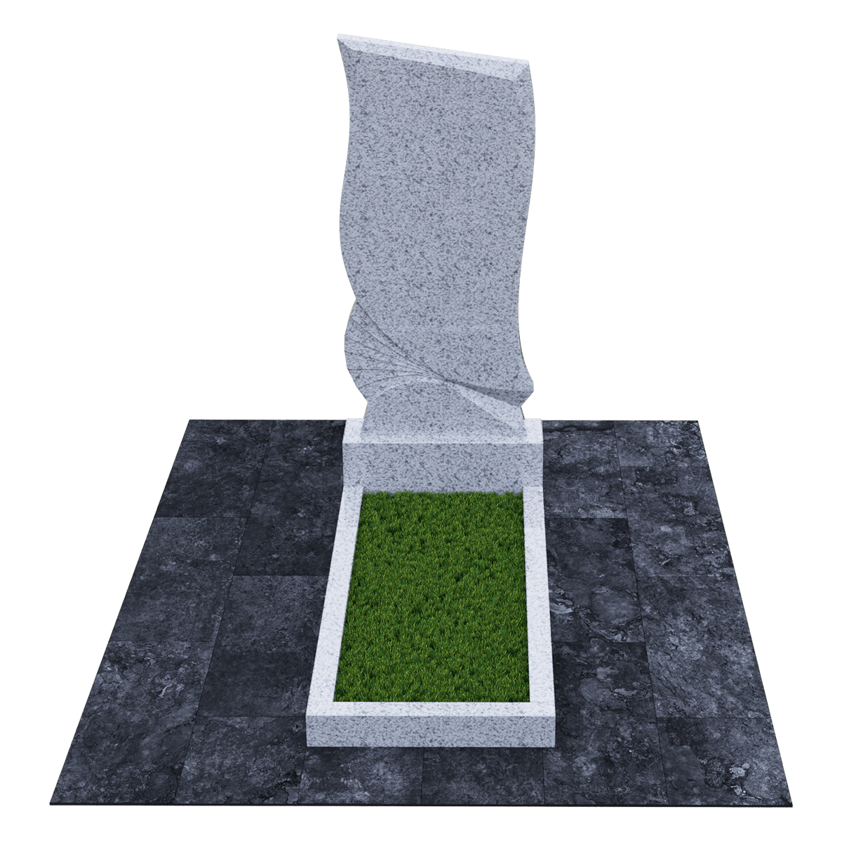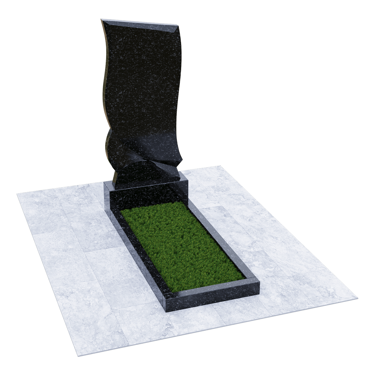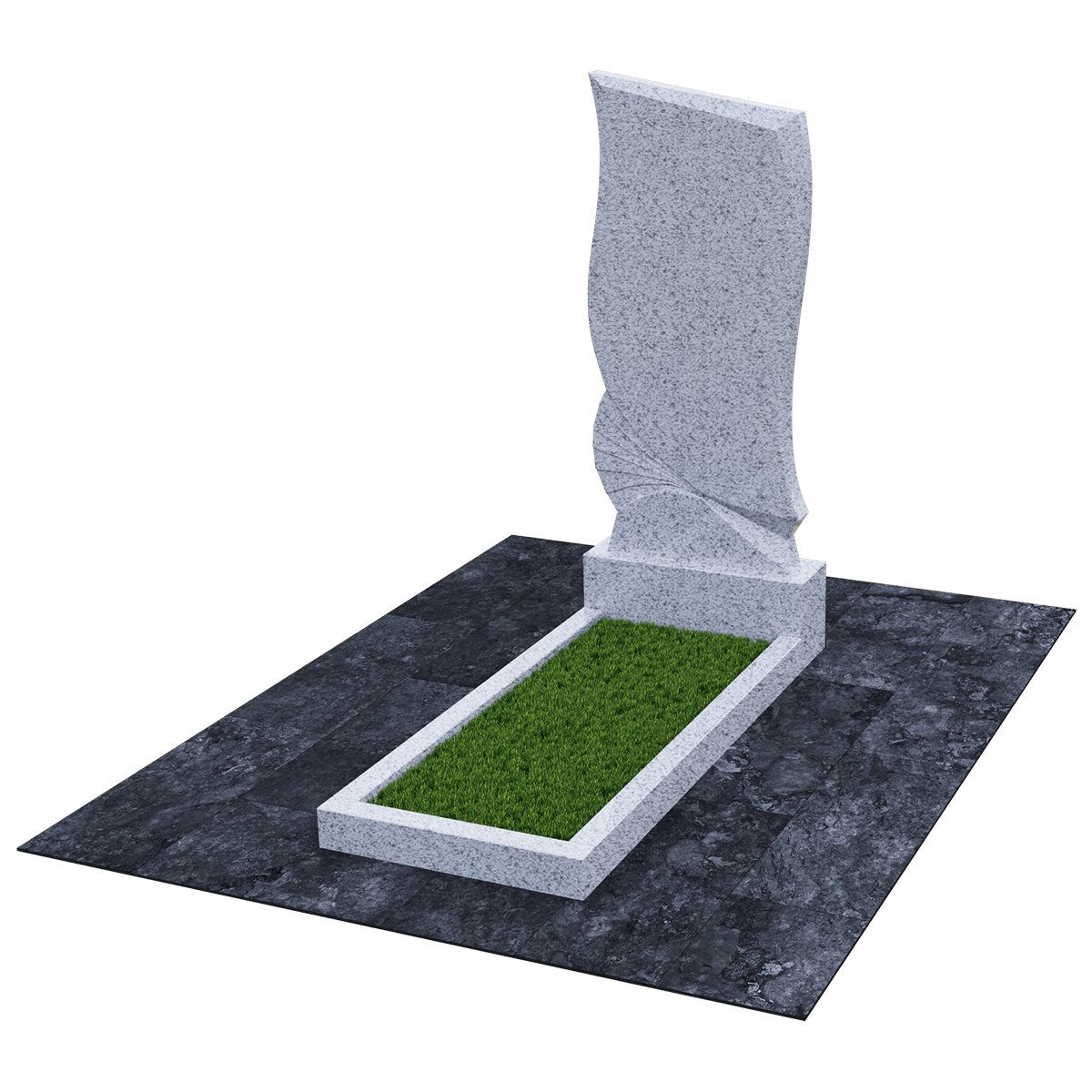 Погребальное сооружение из натурального гранита, предназначается для установки на могильный холм на кладбище при классическом захоронении. Для изготовления памятника дизайнеры использовали мелкозернистый шлифованный камень черного цвета с естественными вкраплениями и прожилками, присущими данной горной породе. Камень не только имеет красивый внешний вид, но и является одним из самых прочных материалов для надгробий, не поддающихся воздействию агрессивной внешней среды. К тому же такой памятник не требует особого ухода, кроме обычной сезонной уборки без применения химических средств. Данный комплекс состоит из вертикальной стелы, стилизованной под фрагмент траурной ленты, изящно декорированной элементами гофрировки и горизонтального цветника прямоугольной формы. Цветник можно заменить сплошным надгробием или изменить его геометрию с помощью дополнительных гранитных косыночных накладок с изогнутым краем, что придаст ему более изысканный вид. На стелу методом высокоточной гравировки наносится портрет, хронологические данные, прощальные слова и элементы декора. По желанию можно заказать полное художественное оформление мемориала выбранным по каталогу вариантом.