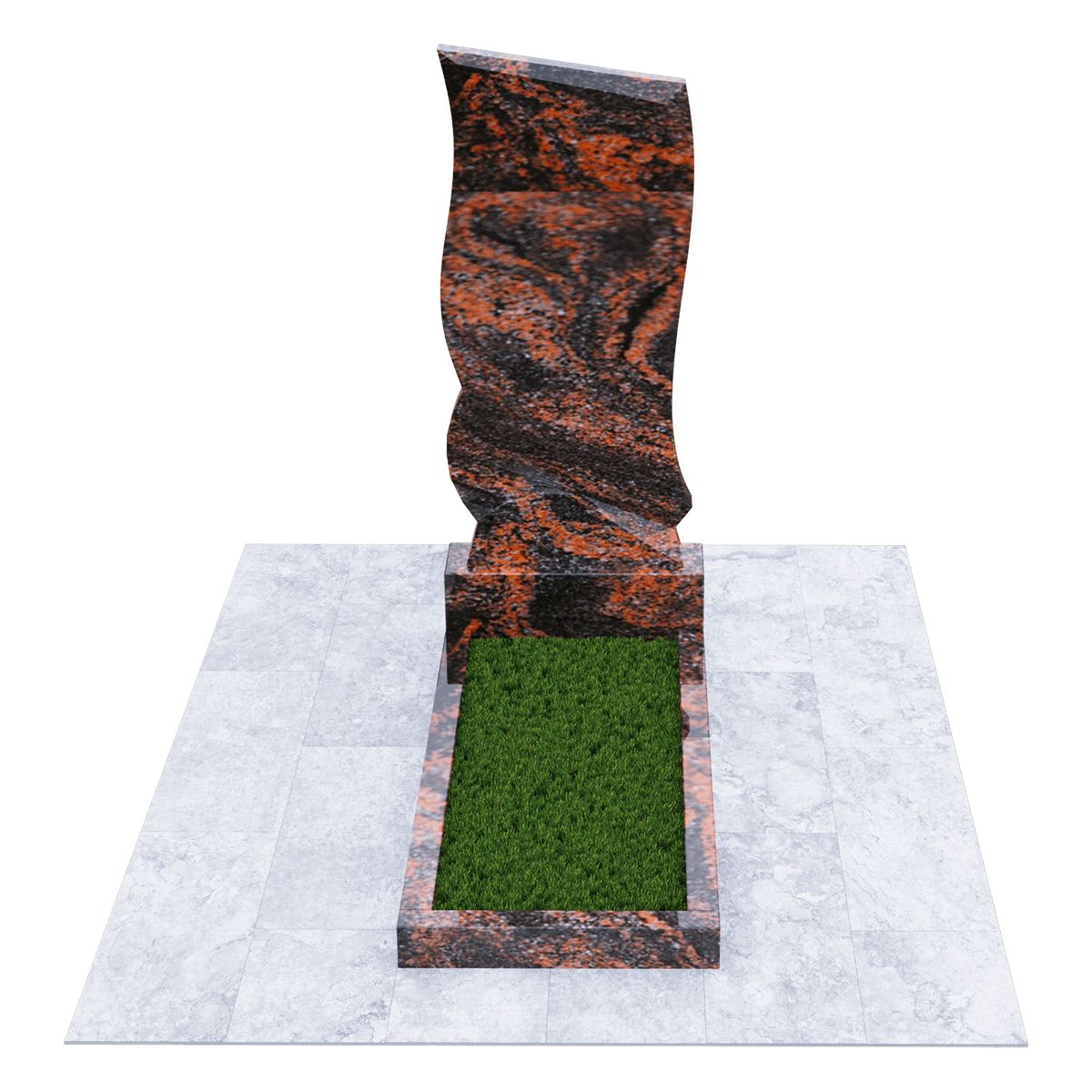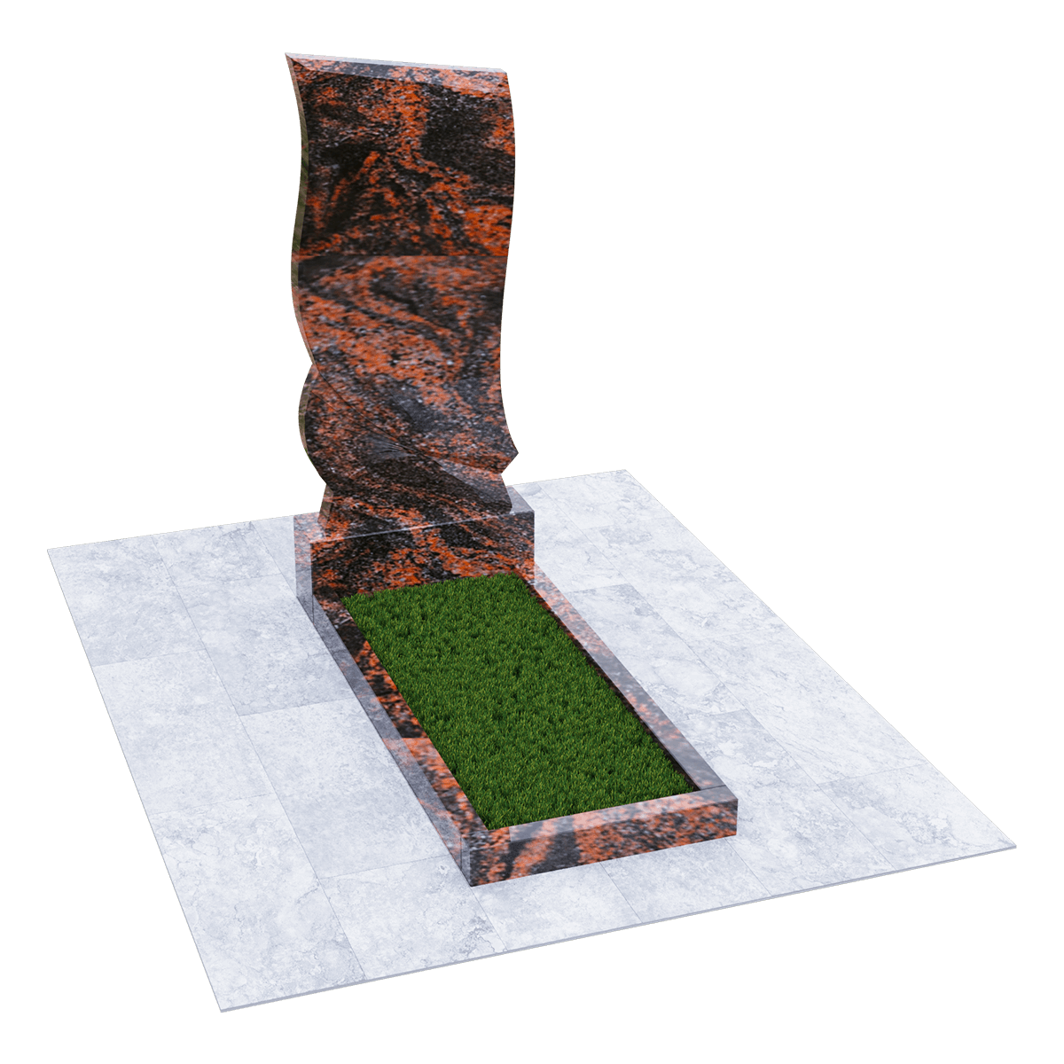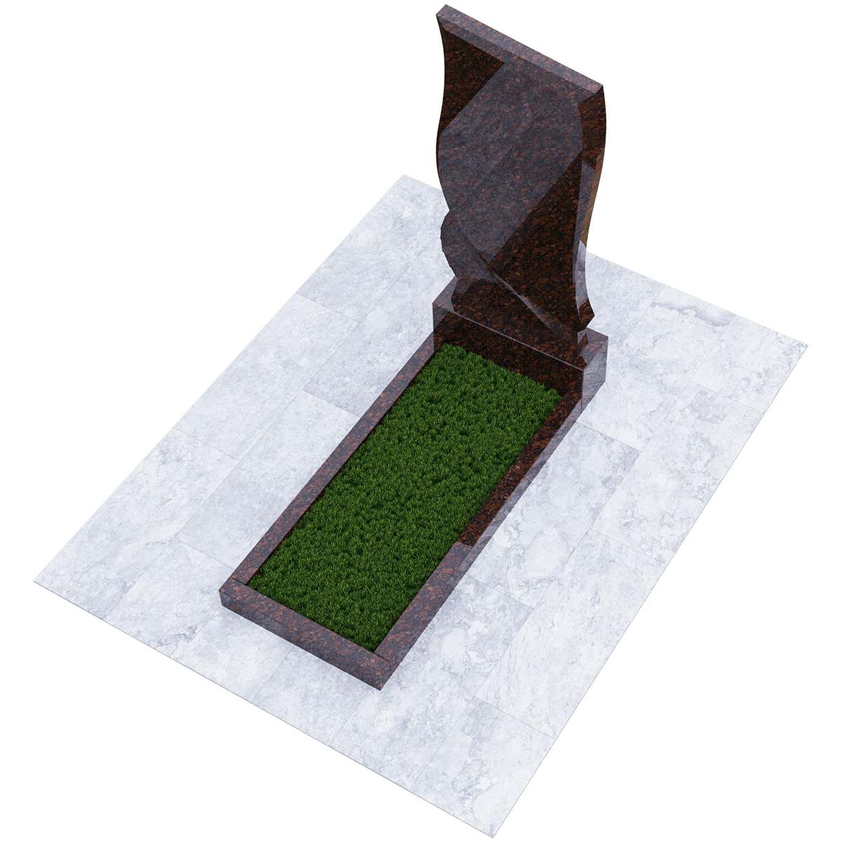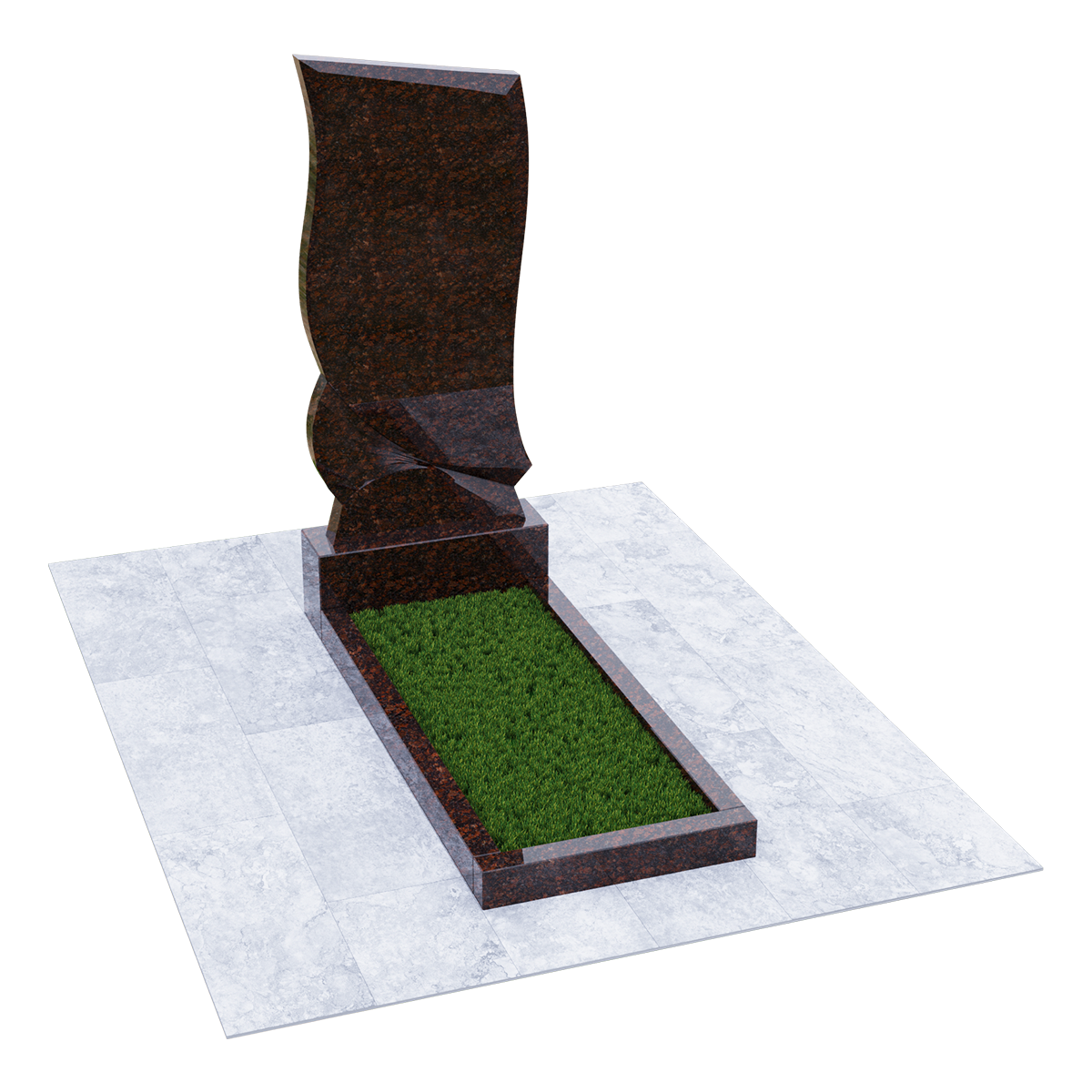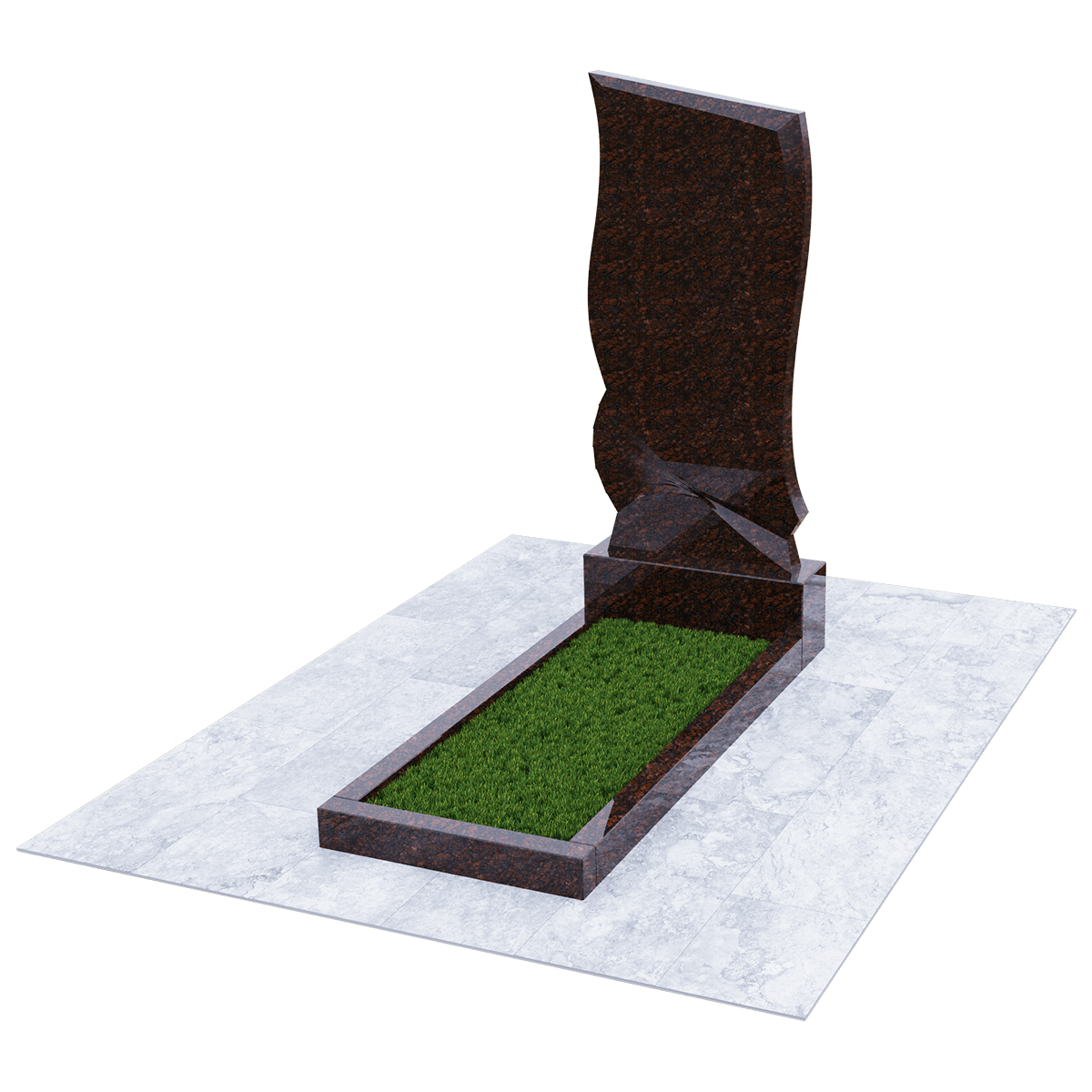 Погребальное сооружение из натурального гранита, предназначается для установки на могильный холм на кладбище при классическом захоронении. Для изготовления памятника дизайнеры использовали мелкозернистый шлифованный камень черного цвета с естественными вкраплениями и прожилками, присущими данной горной породе. Камень не только имеет красивый внешний вид, но и является одним из самых прочных материалов для надгробий, не поддающихся воздействию агрессивной внешней среды. К тому же такой памятник не требует особого ухода, кроме обычной сезонной уборки без применения химических средств. Данный комплекс состоит из вертикальной стелы, стилизованной под фрагмент траурной ленты, изящно декорированной элементами гофрировки и горизонтального цветника прямоугольной формы. Цветник можно заменить сплошным надгробием или изменить его геометрию с помощью дополнительных гранитных косыночных накладок с изогнутым краем, что придаст ему более изысканный вид. На стелу методом высокоточной гравировки наносится портрет, хронологические данные, прощальные слова и элементы декора. По желанию можно заказать полное художественное оформление мемориала выбранным по каталогу вариантом.