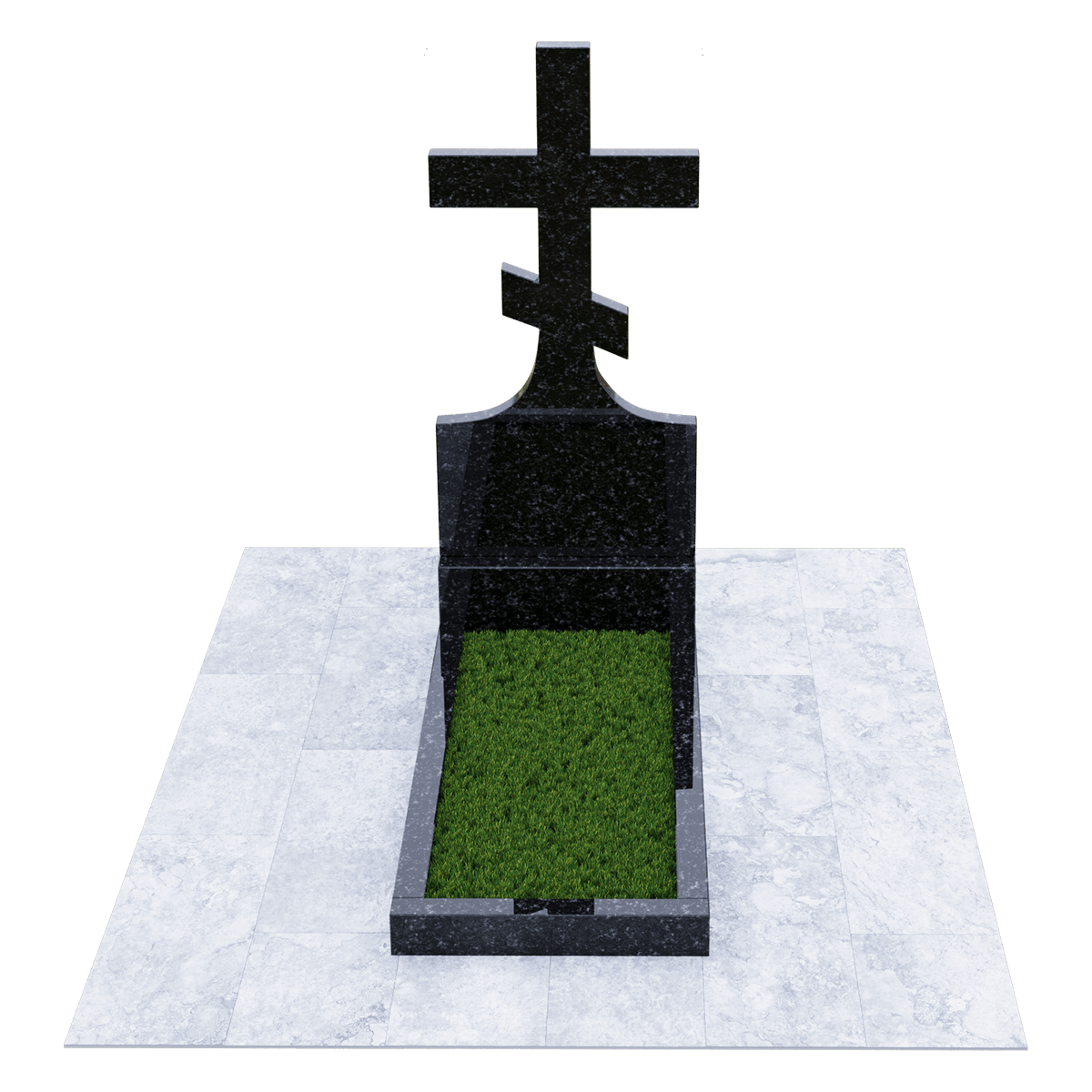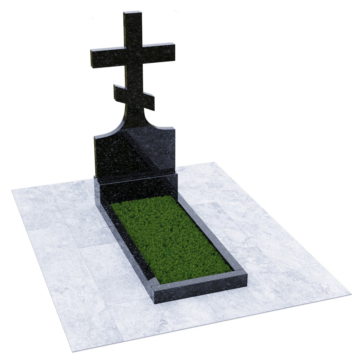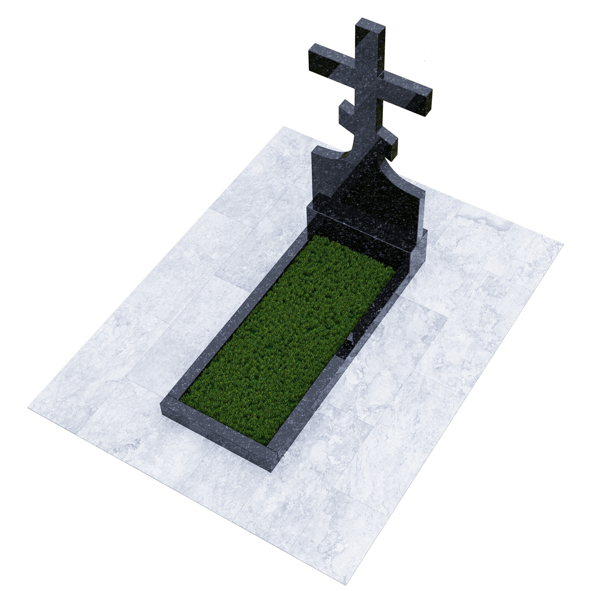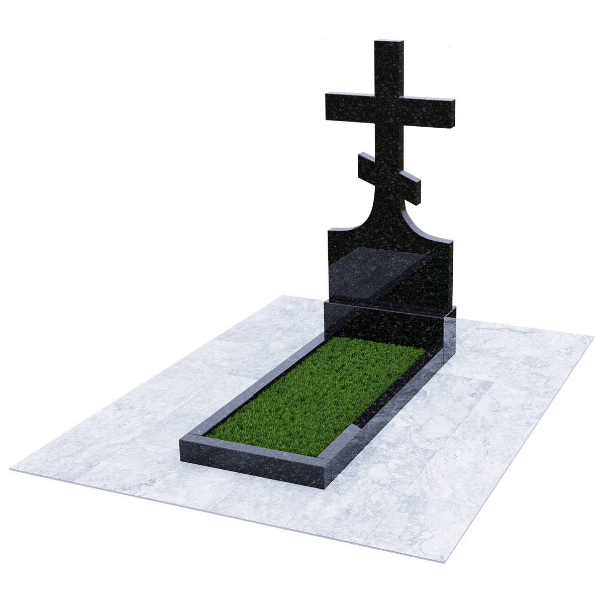 Мемориальный комплекс, предназначенный для классического могильного захоронения на кладбище. Для создания мемориала дизайнеры использовали натуральный гранит черного цвета с разнородными вкраплениями с присущим естественным орнаментом в виде прожилок. Полированный гранит является одним из самых прочных и долговечных материалов, подходящих для установки под открытым небом, так как не поддается разрушительному воздействию атмосферных явлений и микрогрибков. Комплекс состоит из вертикальной стелы, установленной на прочном основании и примыкающего к нему цветника. Стела представляет собой крест с двумя перекладинами, стоящий на подобии погоста. Такой памятник устанавливается на могилу православного христианина. Цветник прямоугольной формы по желанию можно закрыть надгробием или, используя дополнительные накладки, изменить его форму. На могилах с крестом обычно не присутствует портрет, а только персональные данные. Но вполне уместно изображение религиозной атрибутики и элементов художественного декора, качественно выполненной дизайнерами методом гравировки. Все образцы представлены в каталоге.