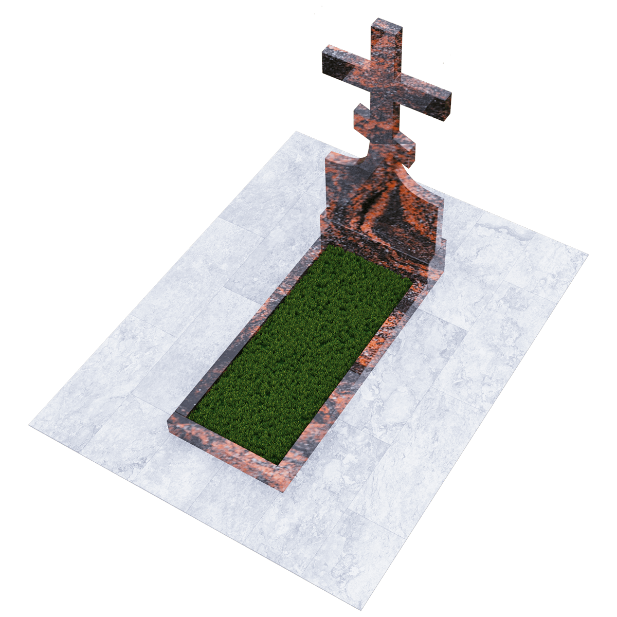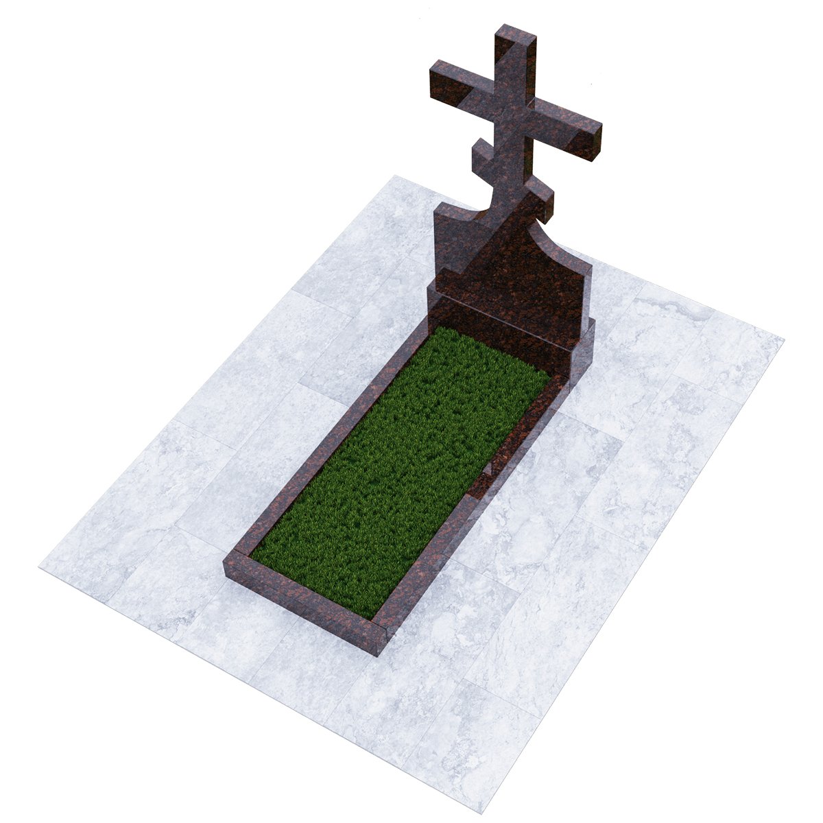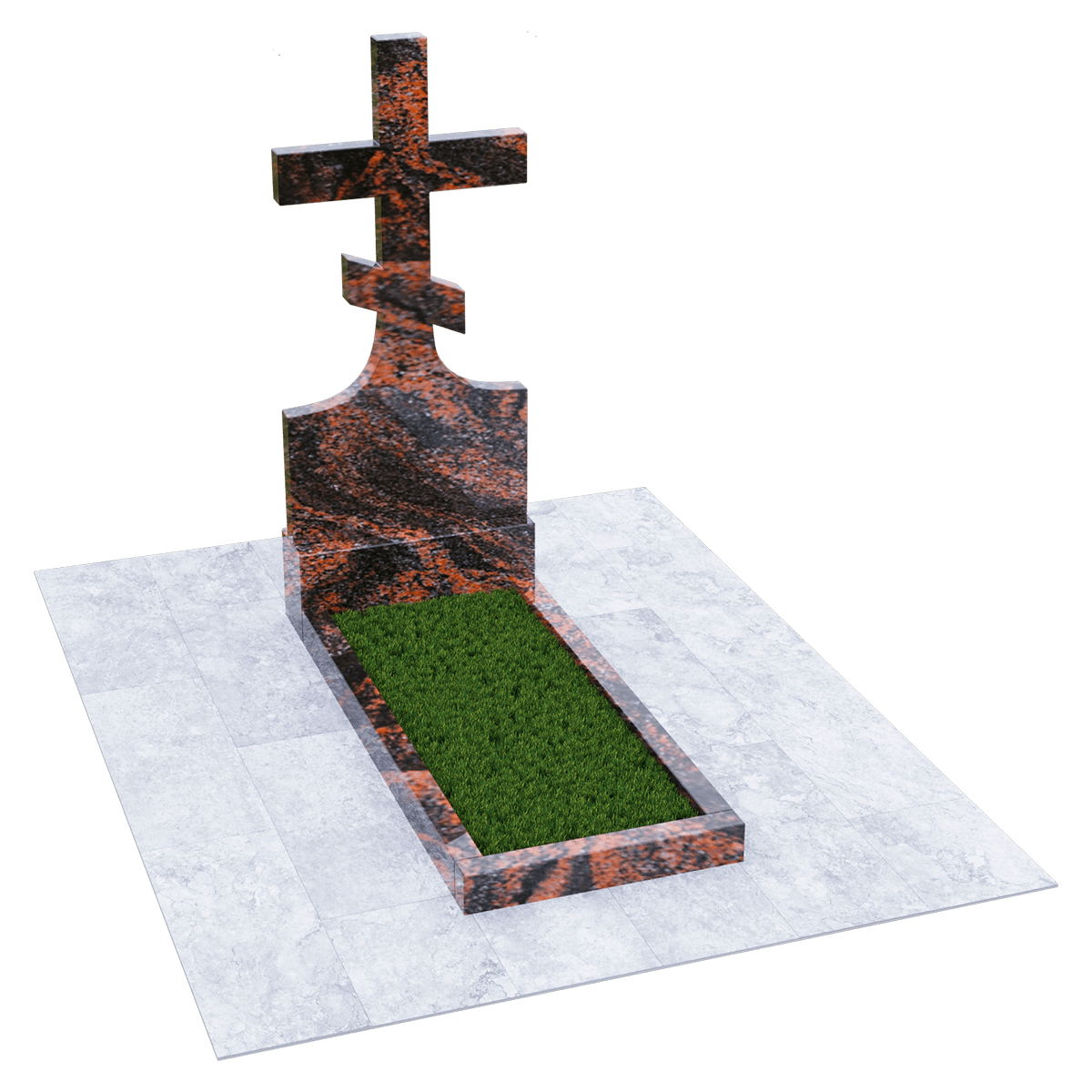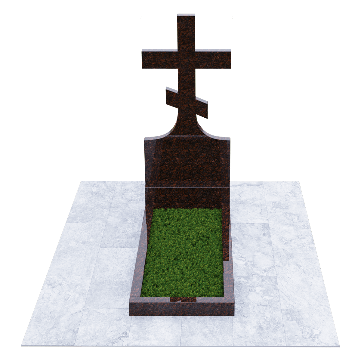 Мемориальный комплекс, предназначенный для классического могильного захоронения на кладбище. Для создания мемориала дизайнеры использовали натуральный гранит черного цвета с разнородными вкраплениями с присущим естественным орнаментом в виде прожилок. Полированный гранит является одним из самых прочных и долговечных материалов, подходящих для установки под открытым небом, так как не поддается разрушительному воздействию атмосферных явлений и микрогрибков. Комплекс состоит из вертикальной стелы, установленной на прочном основании и примыкающего к нему цветника. Стела представляет собой крест с двумя перекладинами, стоящий на подобии погоста. Такой памятник устанавливается на могилу православного христианина. Цветник прямоугольной формы по желанию можно закрыть надгробием или, используя дополнительные накладки, изменить его форму. На могилах с крестом обычно не присутствует портрет, а только персональные данные. Но вполне уместно изображение религиозной атрибутики и элементов художественного декора, качественно выполненной дизайнерами методом гравировки. Все образцы представлены в каталоге.